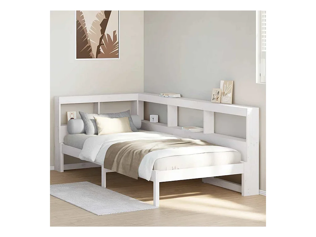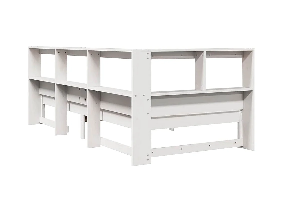 Lit bibliothèque sans matelas blanc 90x200cm bois de pin massif