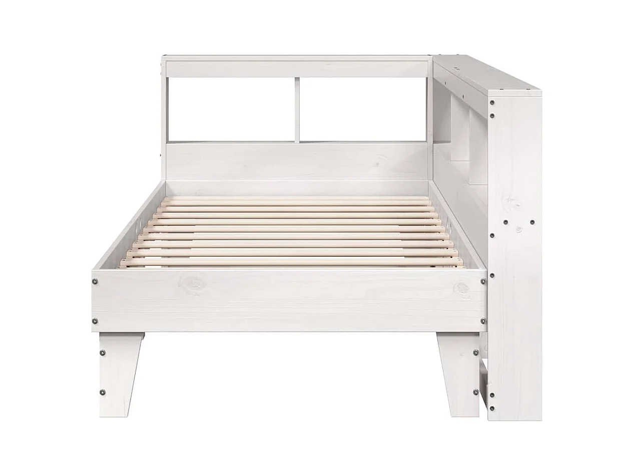 Lit bibliothèque sans matelas blanc 90x200cm bois de pin massif