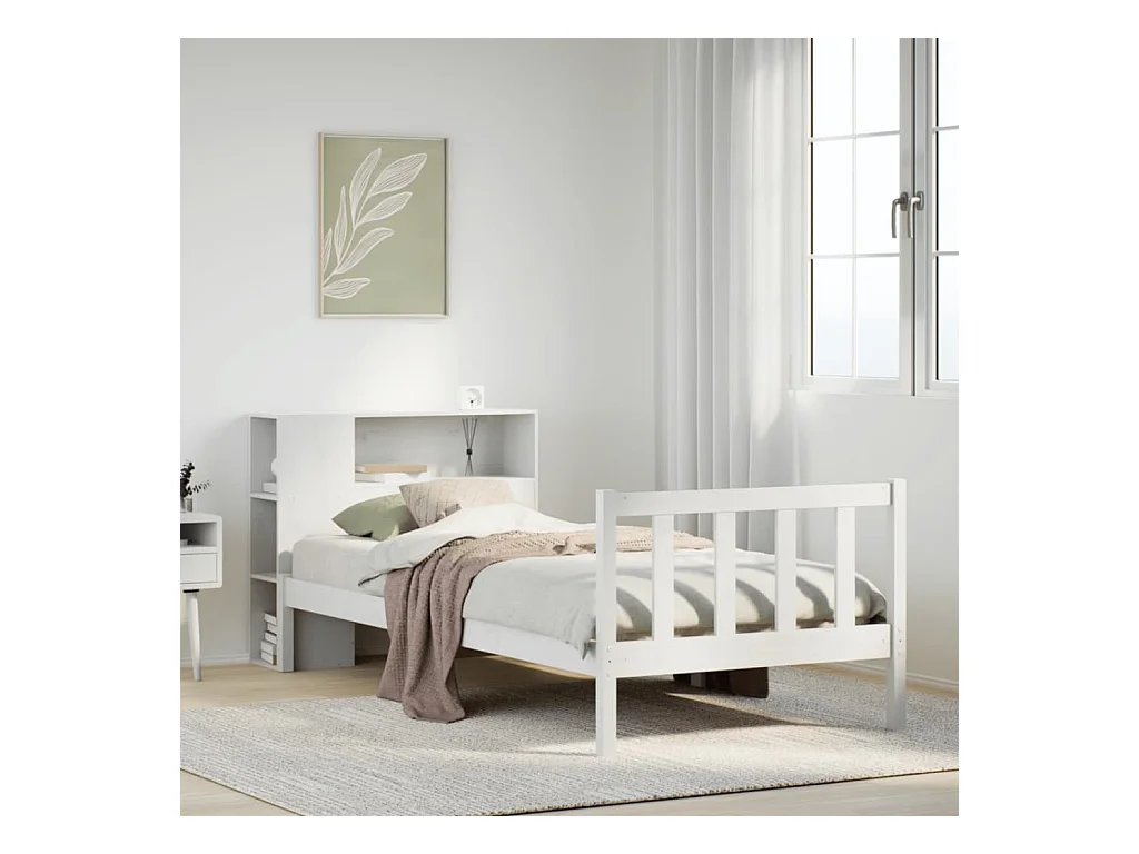 Lit bibliothèque sans matelas blanc 90x200cm bois de pin massif