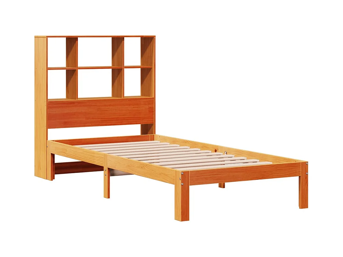 Lit bibliothèque sans matelas cire marron 100x200 cm pin massif