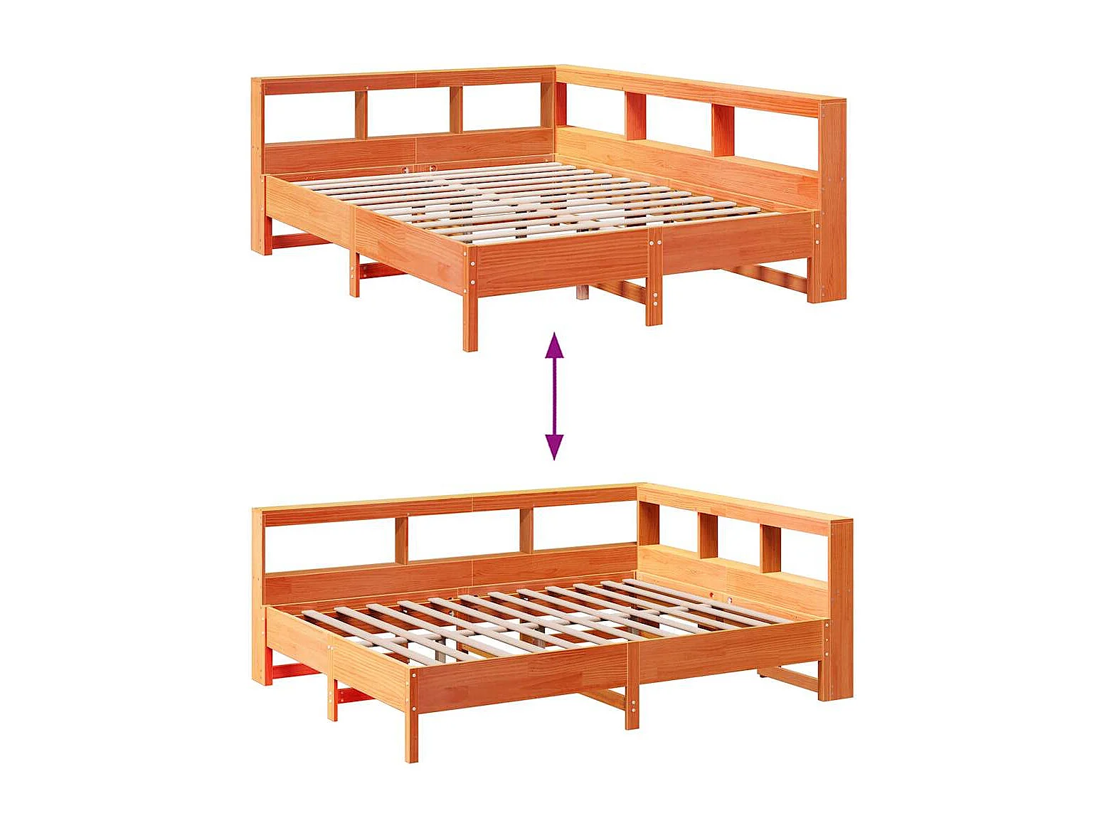 Lit bibliothèque sans matelas cire marron 140x190 cm pin massif