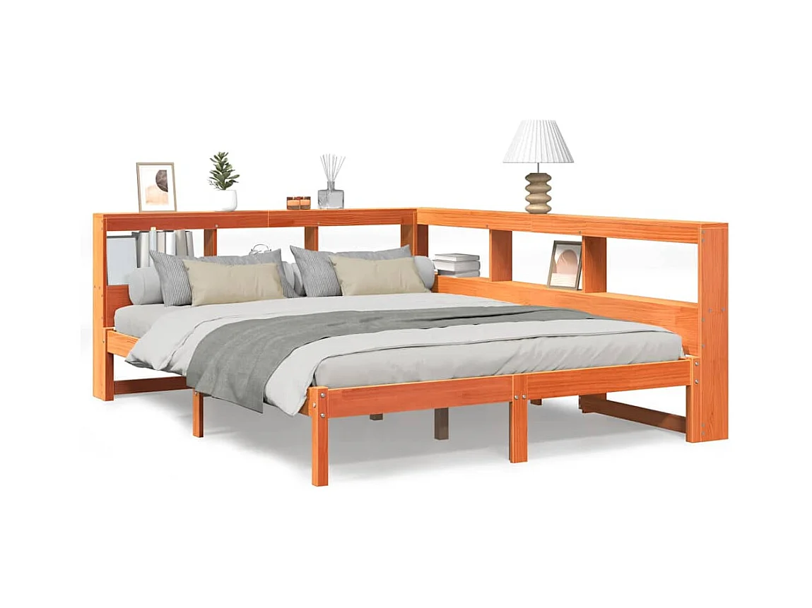 Lit bibliothèque sans matelas cire marron 140x190 cm pin massif