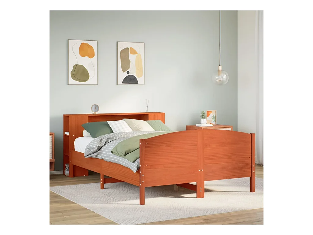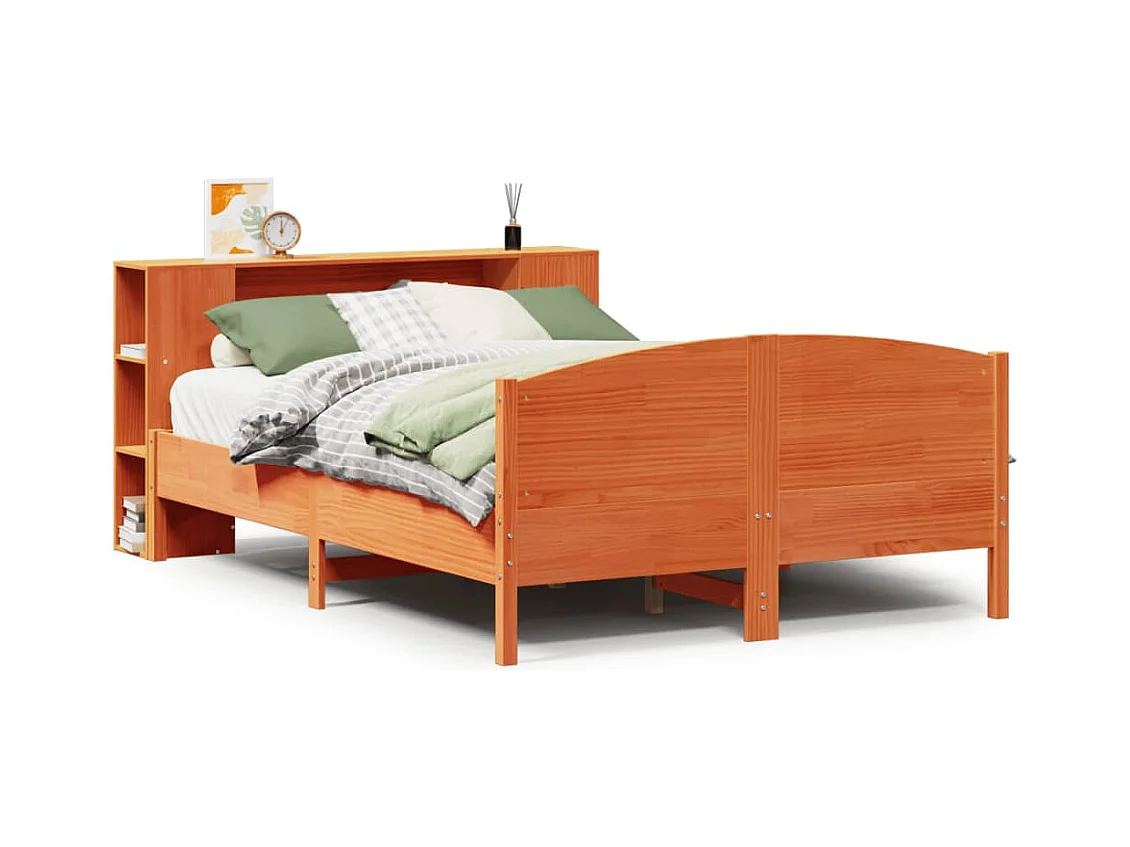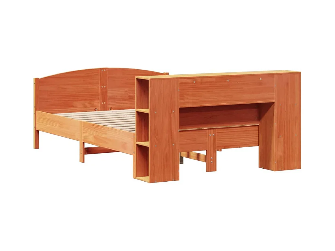 Lit bibliothèque sans matelas cire marron 140x190 cm pin massif