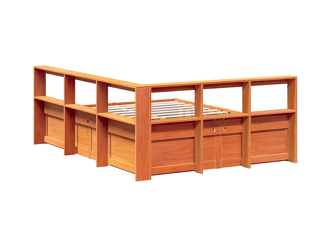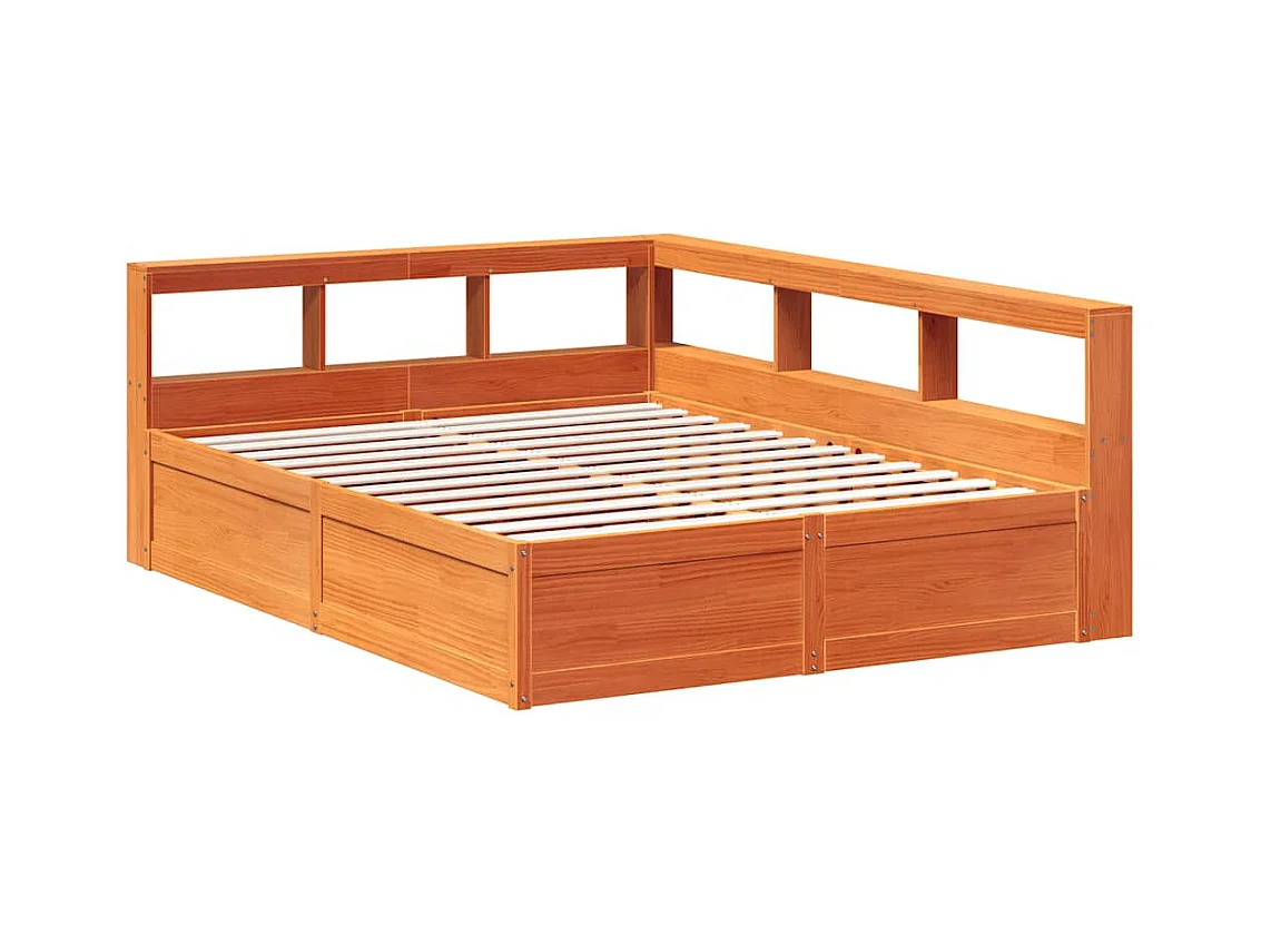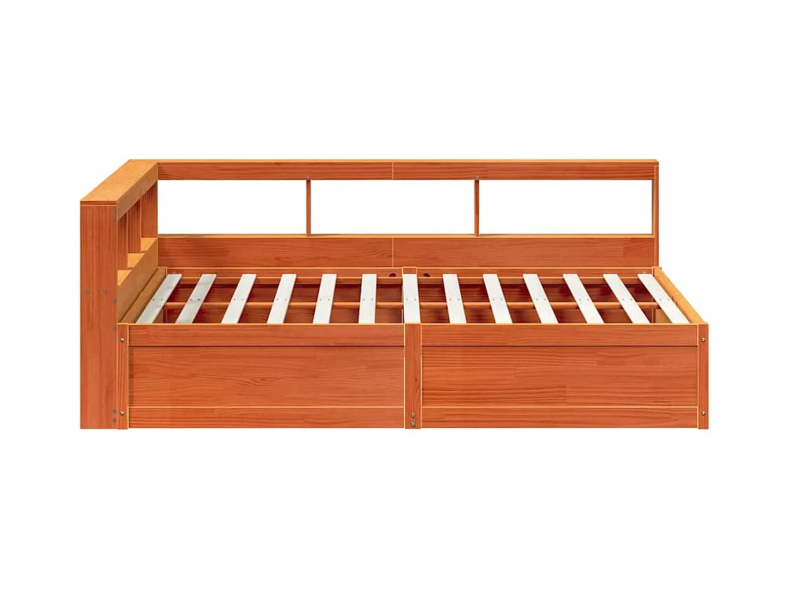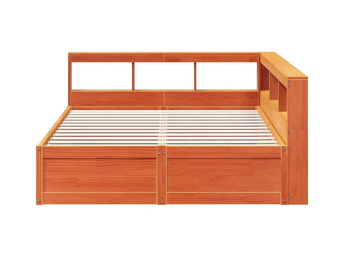 Lit bibliothèque sans matelas cire marron 140x200 cm pin massif