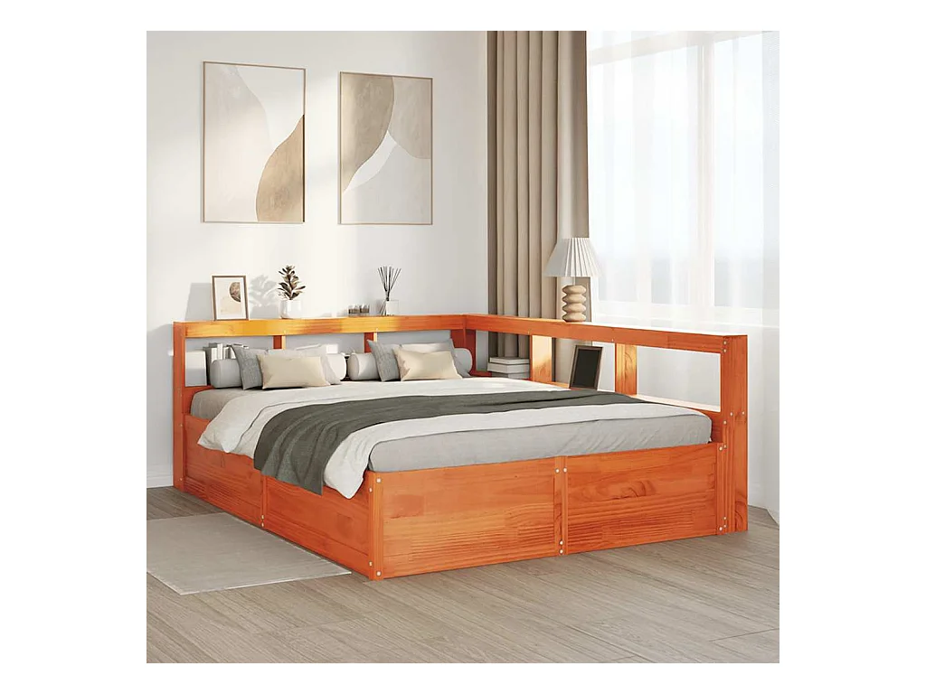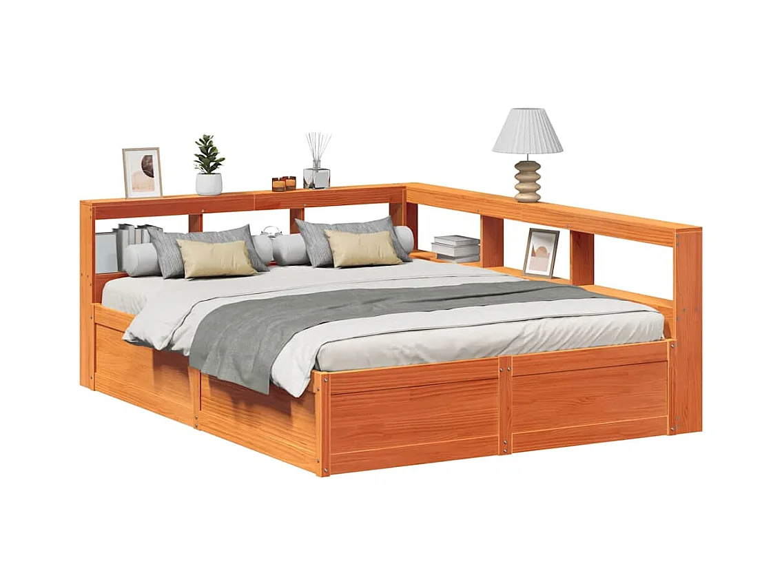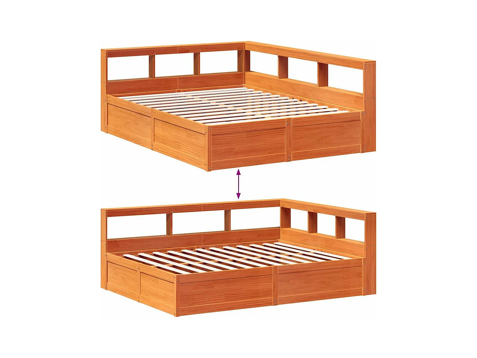 Lit bibliothèque sans matelas cire marron 140x200 cm pin massif