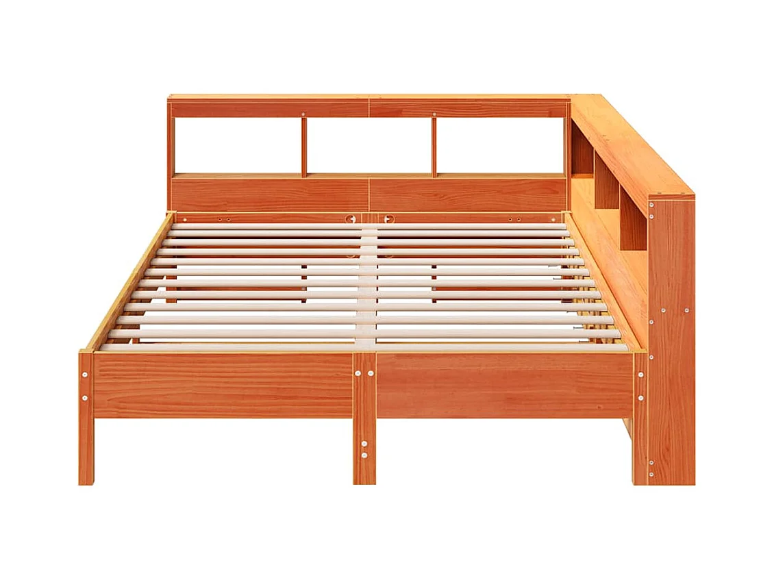 Lit bibliothèque sans matelas cire marron 150x200 cm pin massif