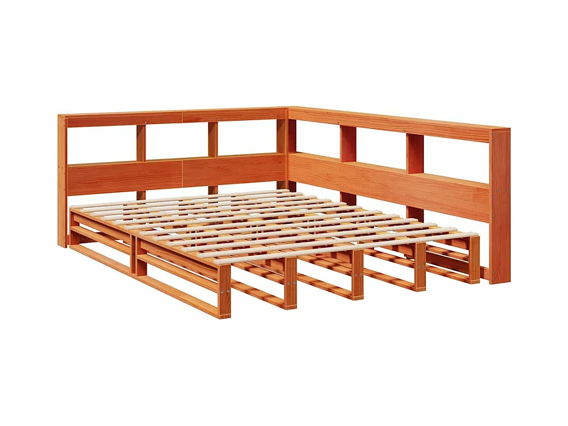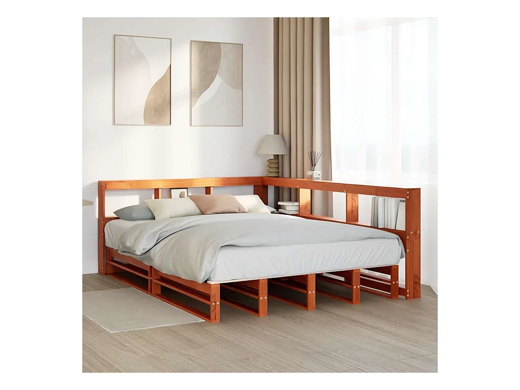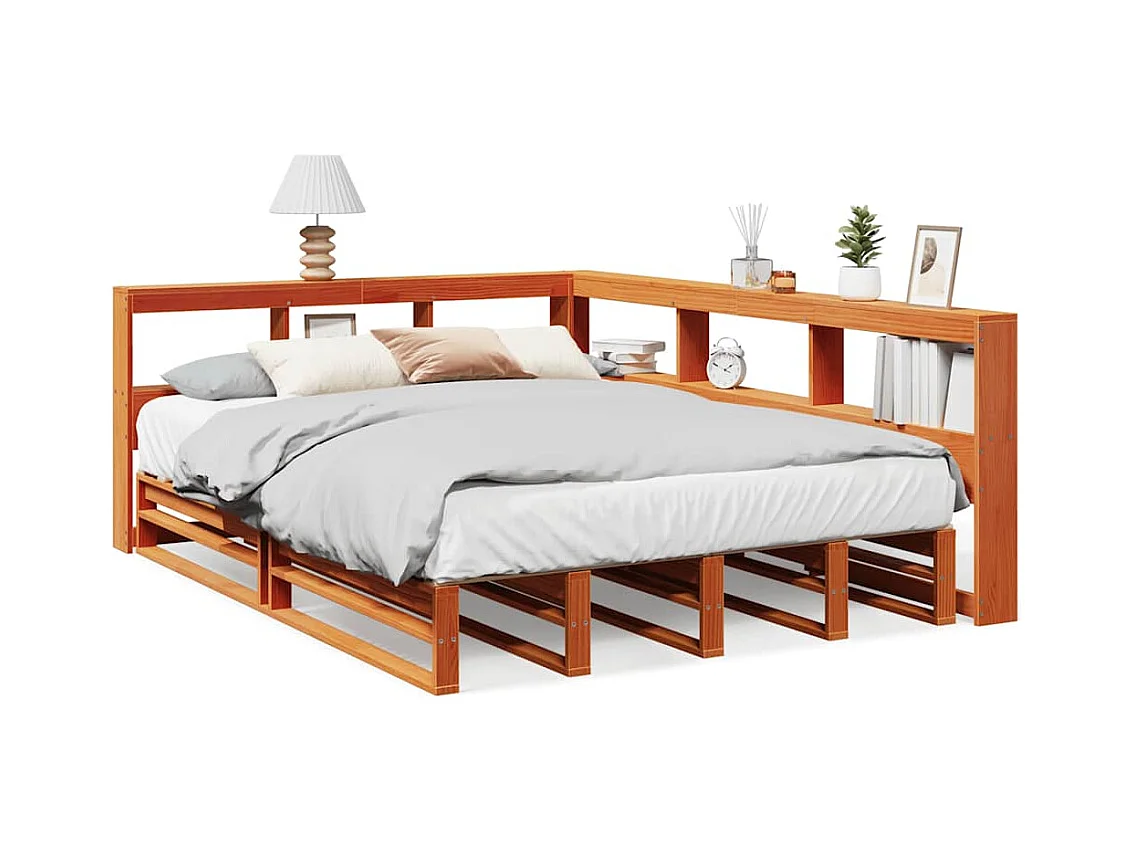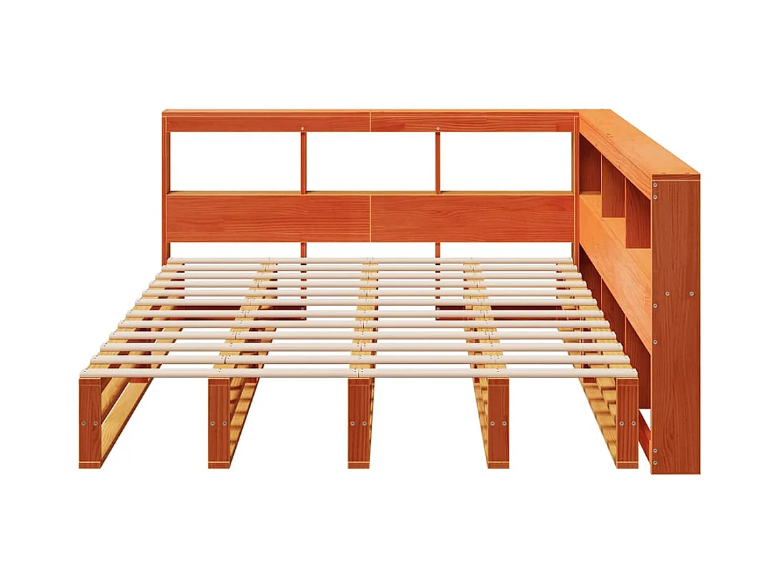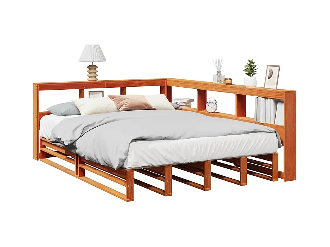 Lit bibliothèque sans matelas cire marron 150x200 cm pin massif