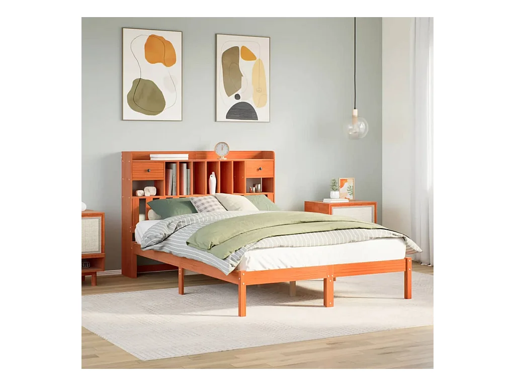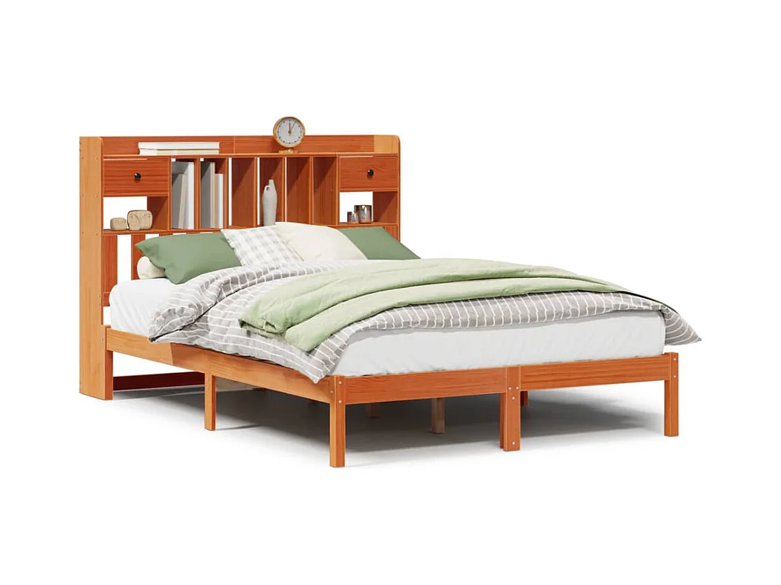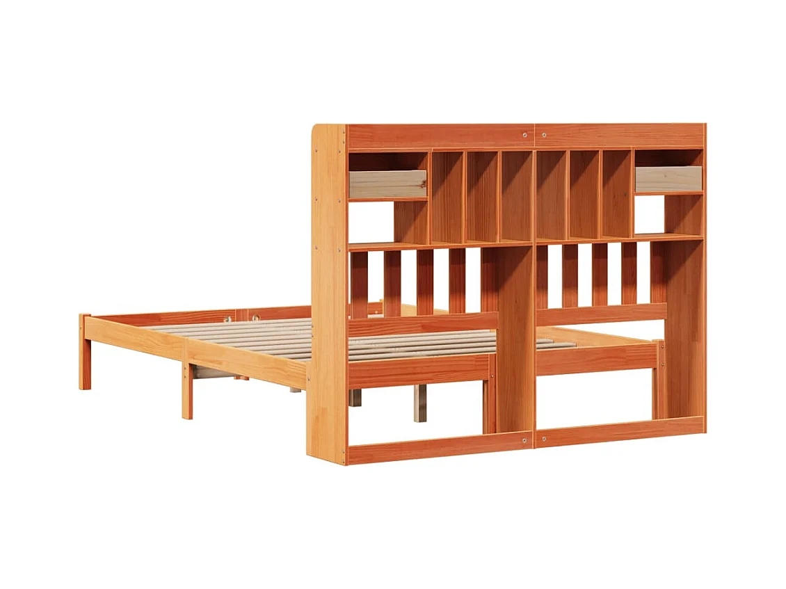 Lit bibliothèque sans matelas cire marron 160x200 cm pin massif