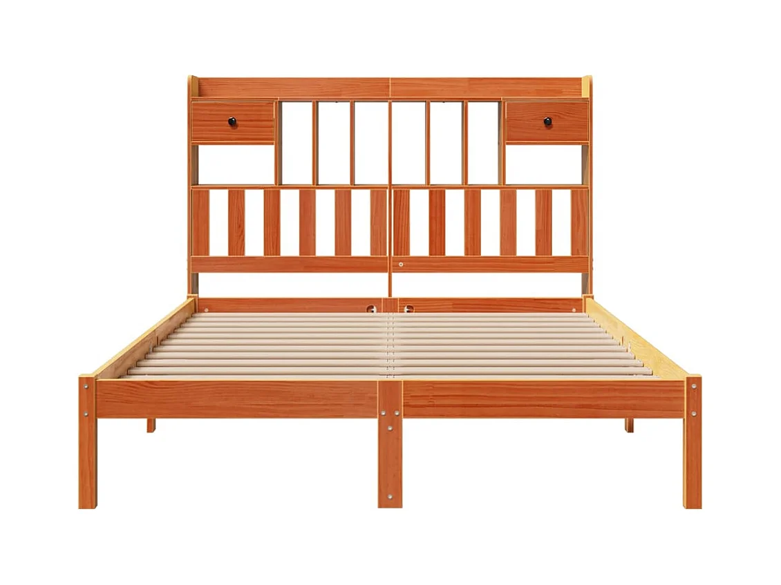 Cadre de lit sans matelas avec tiroirs brun cire 160x200 cm pin