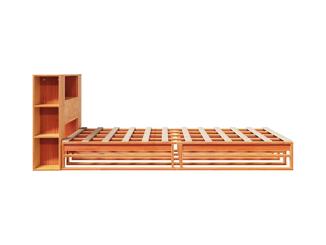 Lit bibliothèque sans matelas cire marron 160x200cm bois massif