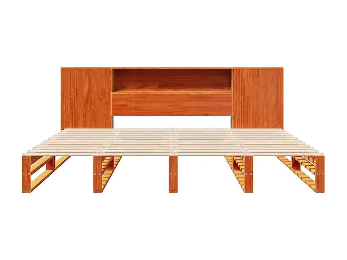 Lit bibliothèque sans matelas cire marron 200x200 cm pin massif