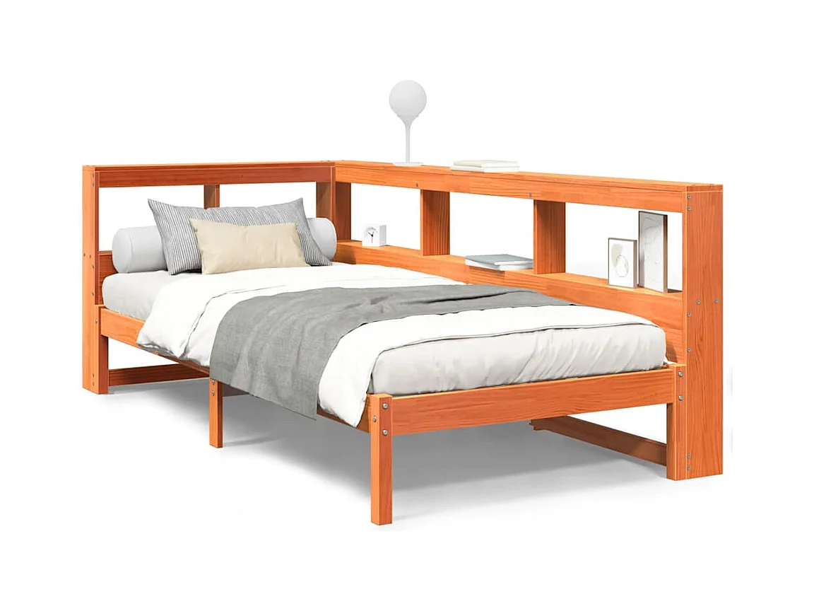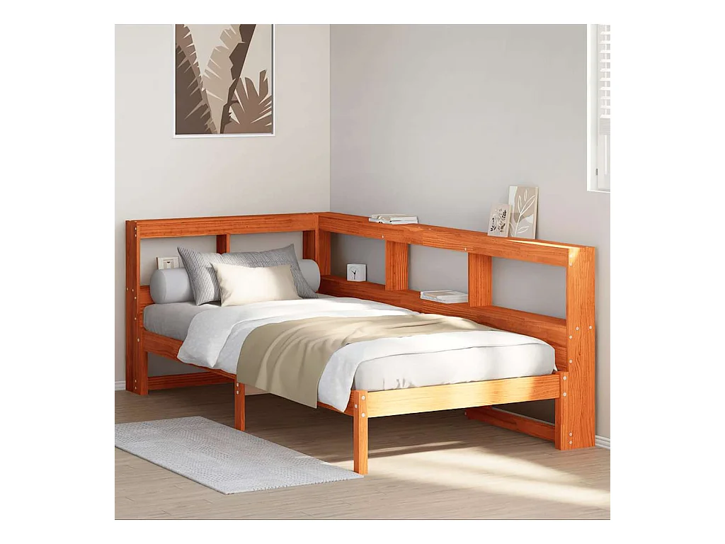 Lit bibliothèque sans matelas cire marron 75x190 cm pin massif
