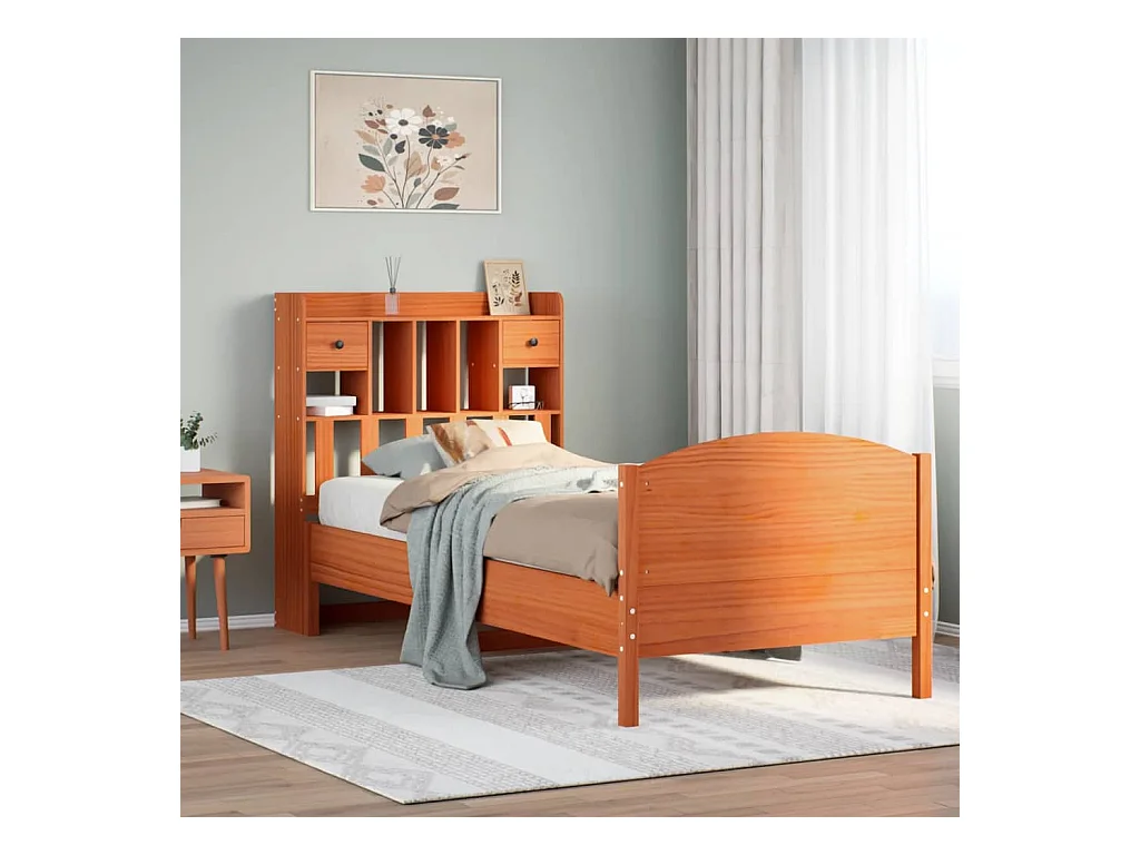 Lit bibliothèque sans matelas cire marron 75x190 cm pin massif