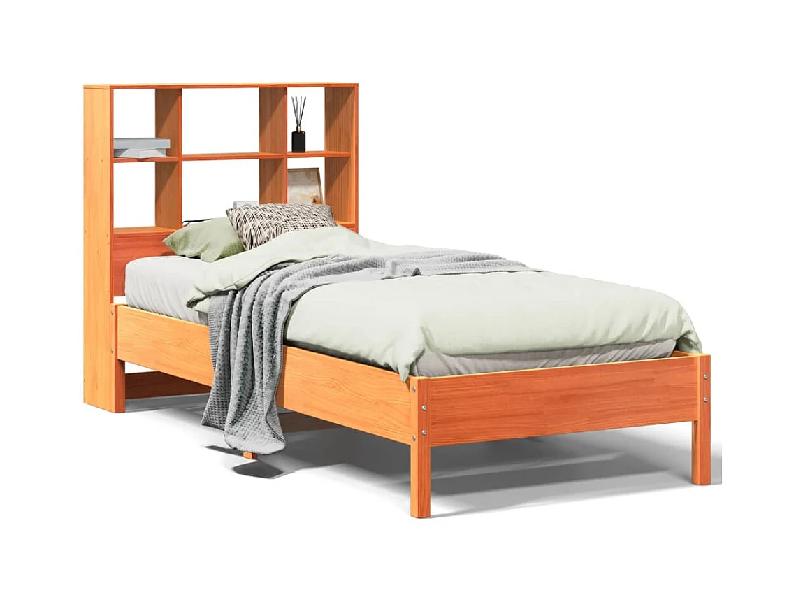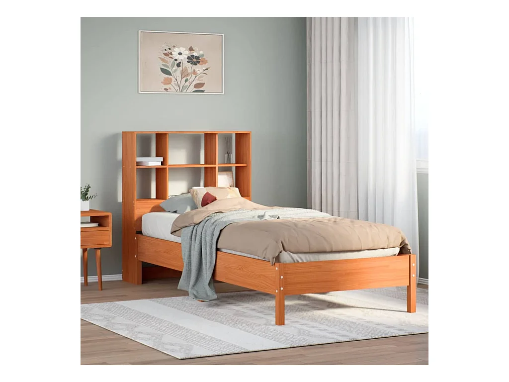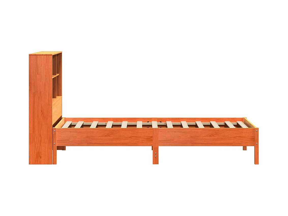 Lit bibliothèque sans matelas cire marron 75x190 cm pin massif