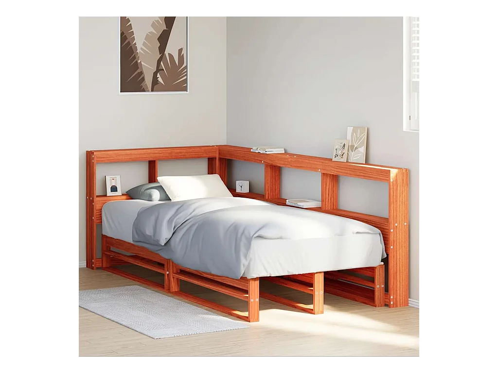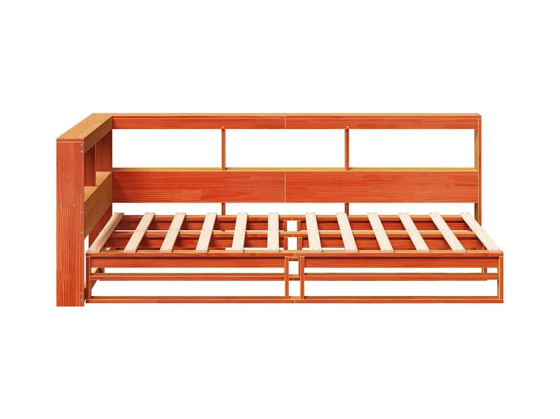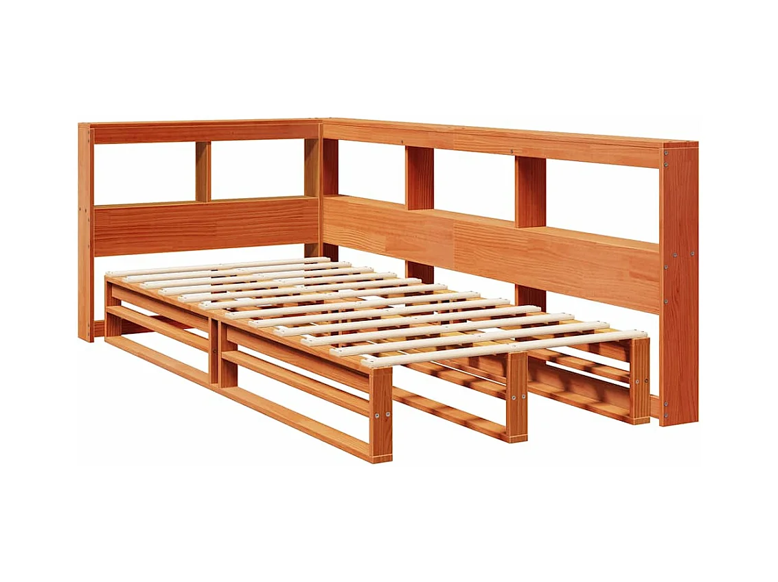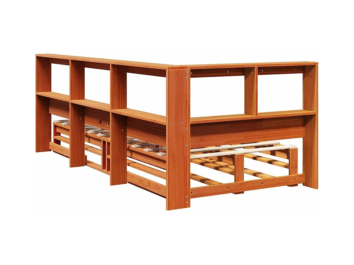 Lit bibliothèque sans matelas cire marron 90x190 cm pin massif