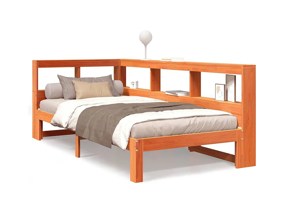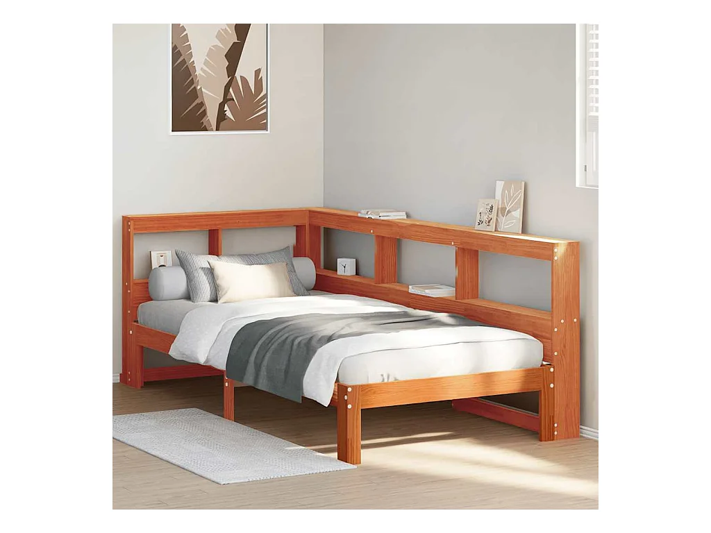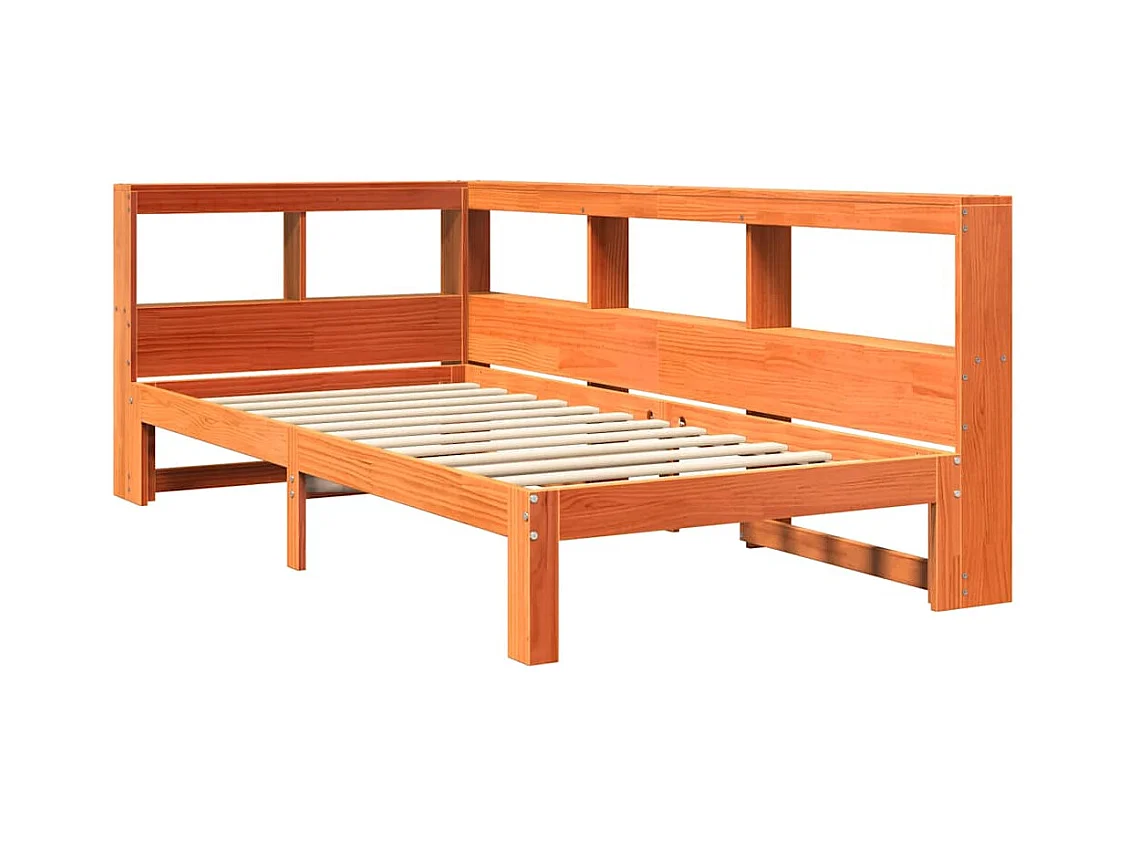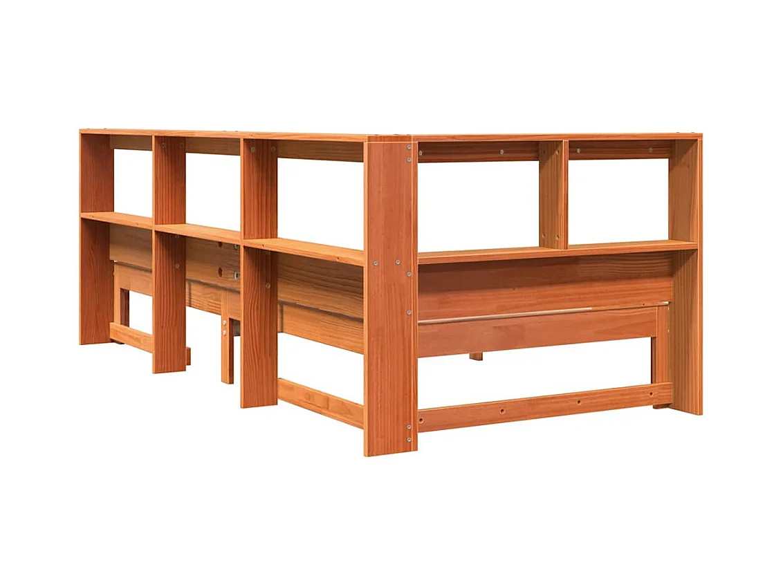 Lit bibliothèque sans matelas cire marron 90x200 cm pin massif