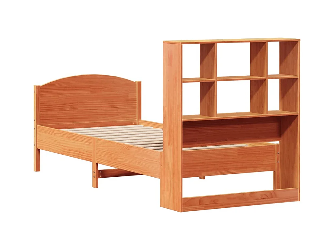 Lit bibliothèque sans matelas cire marron 90x200 cm pin massif