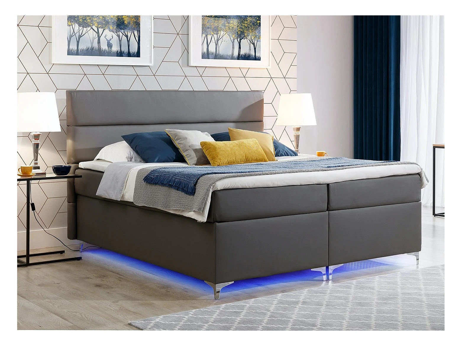 Lit boxspring 140x200 simili cuir gris clair Mador