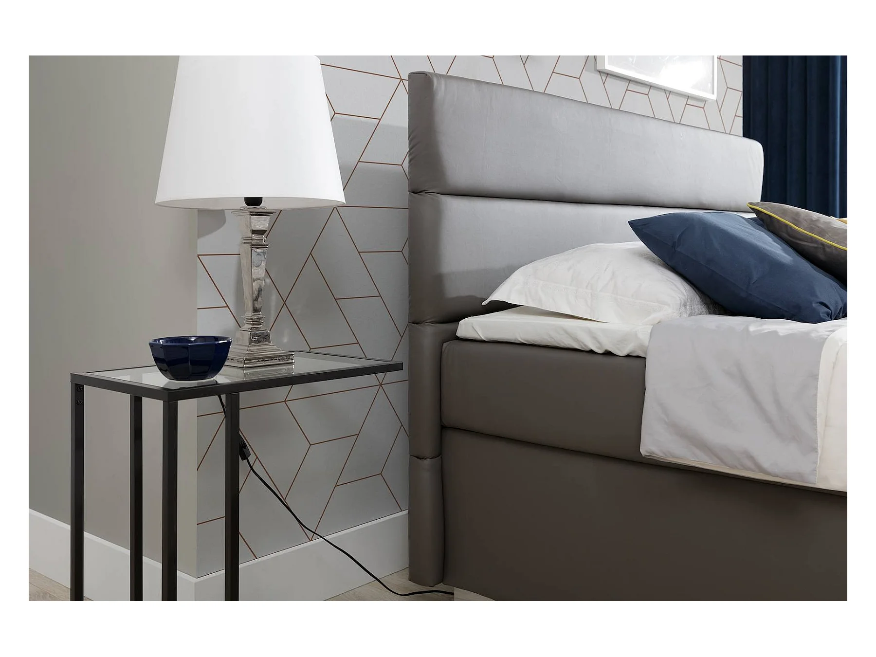 Lit boxspring 140x200 simili cuir gris foncé Mador