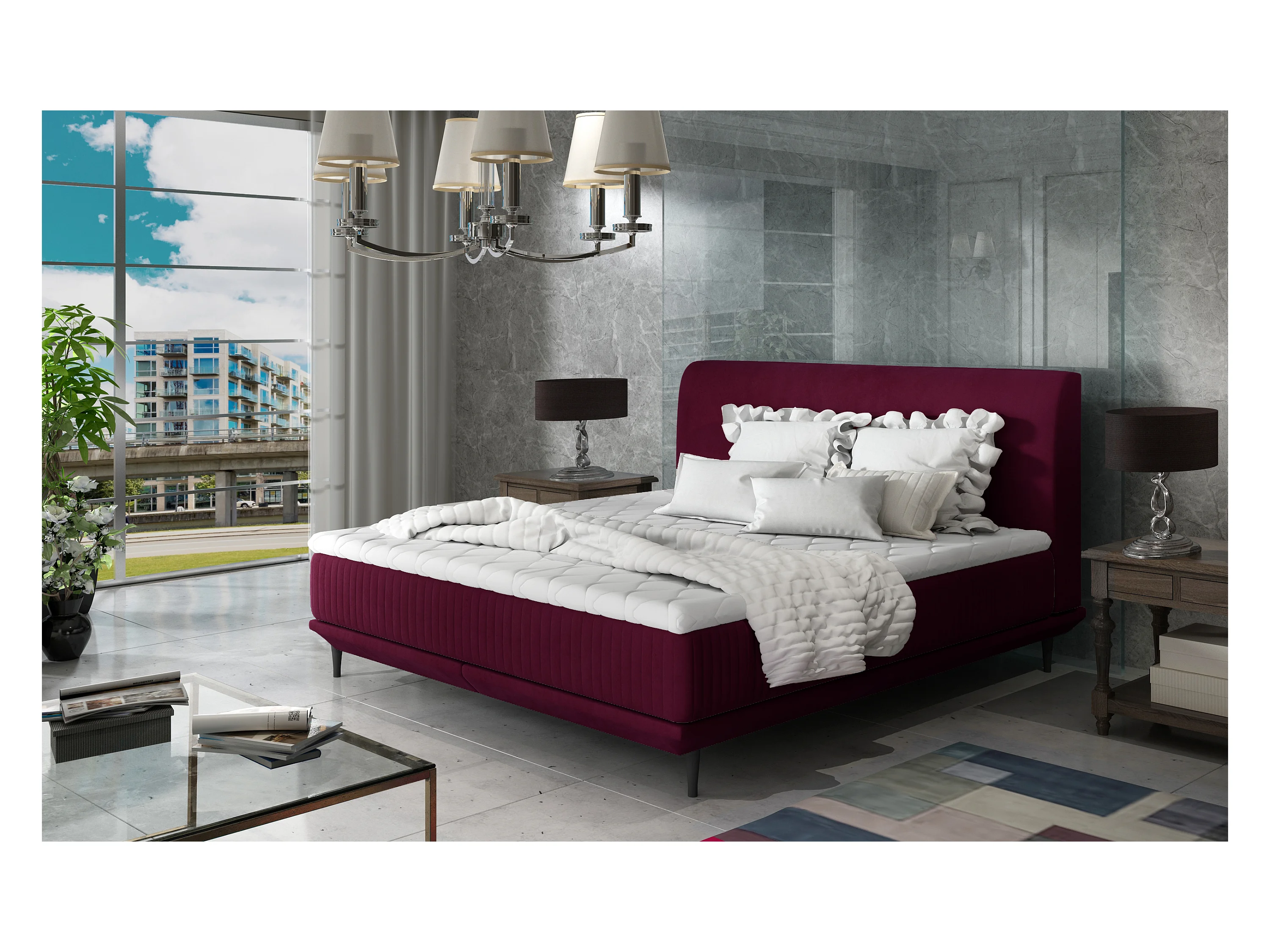 Lit boxspring 160x200 velours bordeaux sommier et matelas inclus Mastera