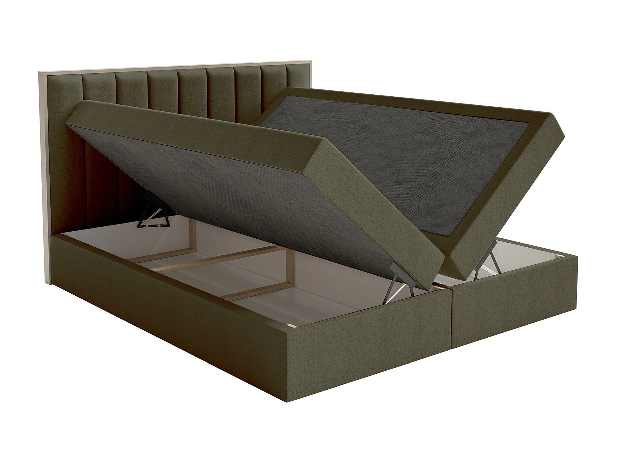 Lit continental avec surmatelas - 160x200 cm - velours olive foncé - SALIANO