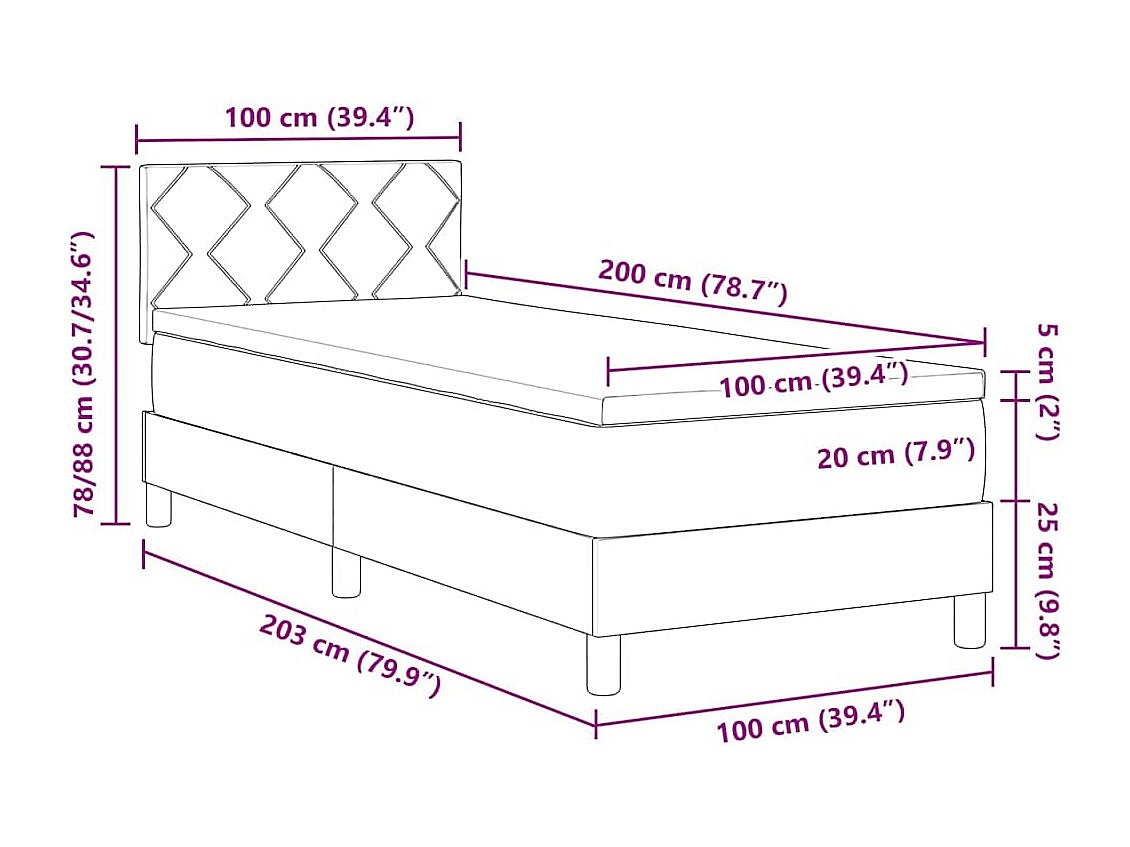 Lit à ressorts Gris clair et blanc 203 x 100 x 128 cm
