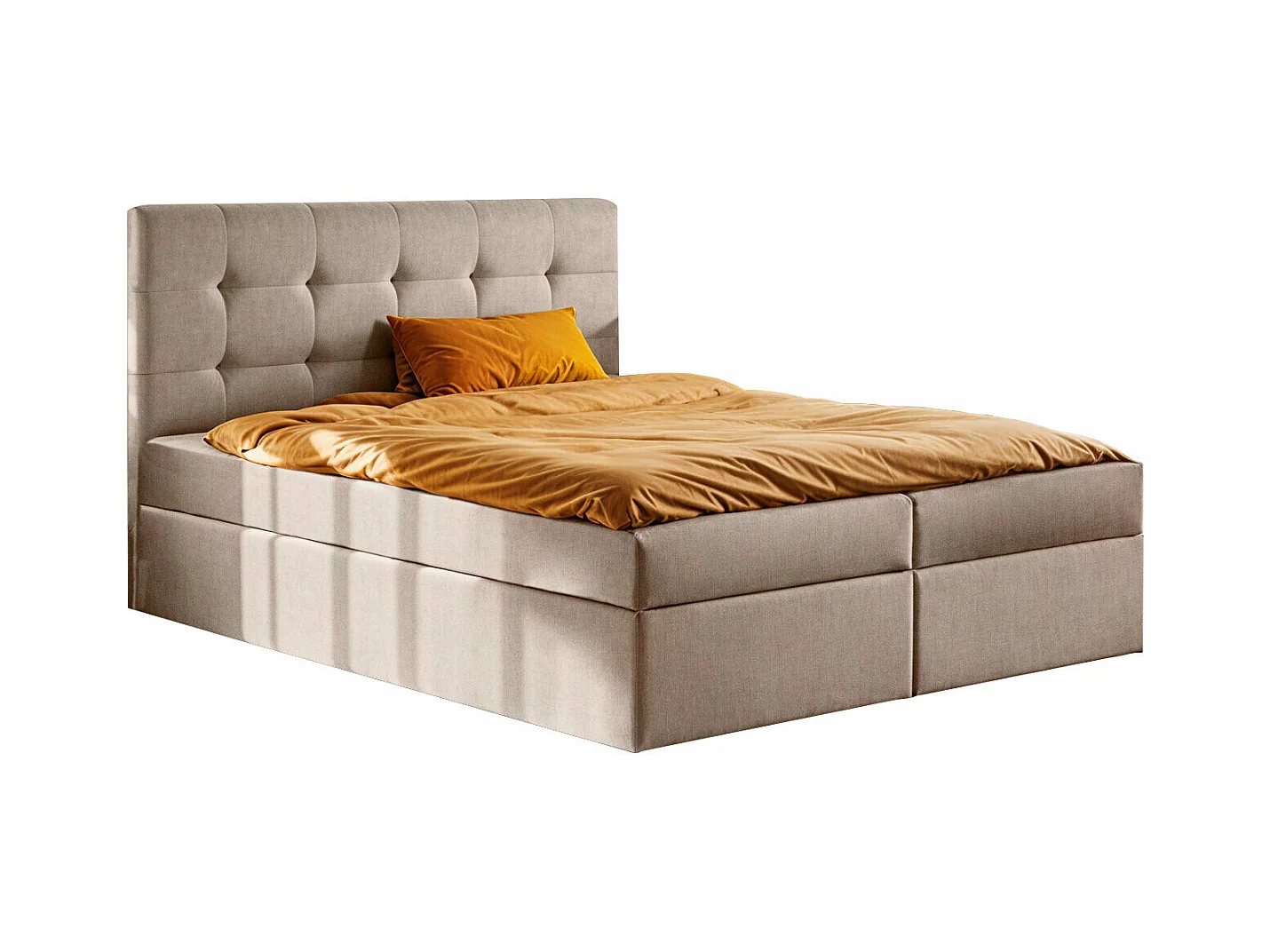 Lit continental Mars avec sommier tissu Riviera Beige 200x200 cm