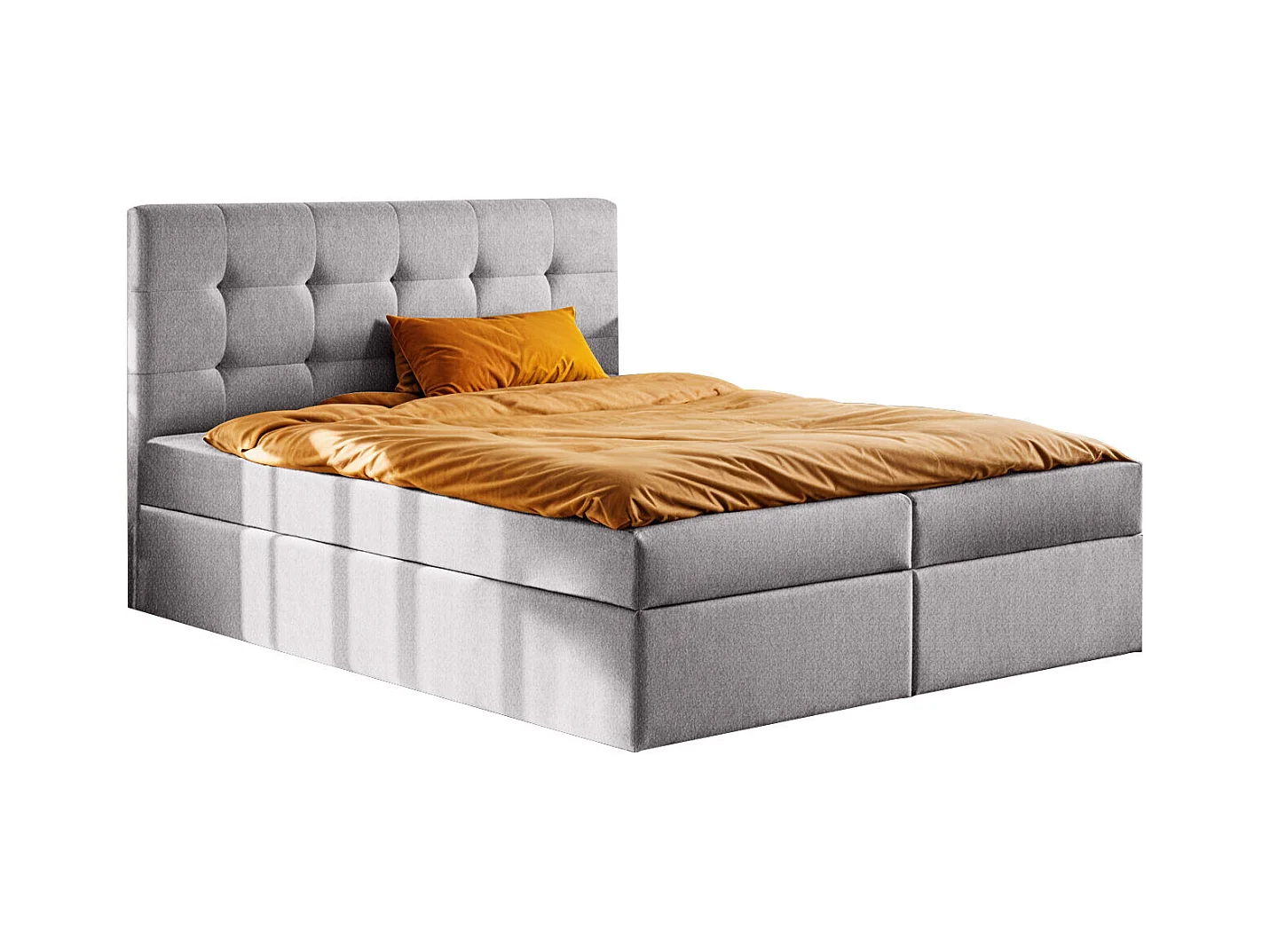 Lit boxspring avec matelas et sommier, tissu LUDANO Soro Gris 160x200 cm H3-Bonell