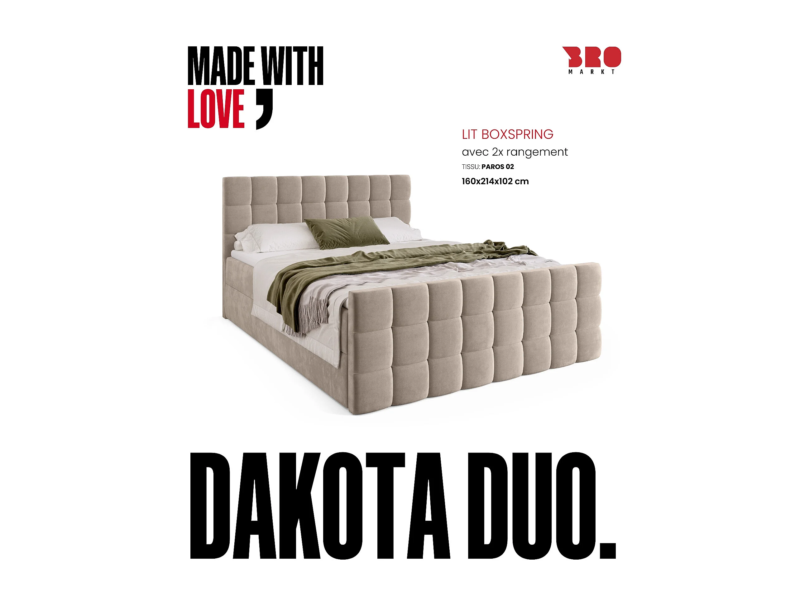 Lit boxspring avec rangement DAKOTA DUO - matelas - surmatelas - beige - 160x200 cm