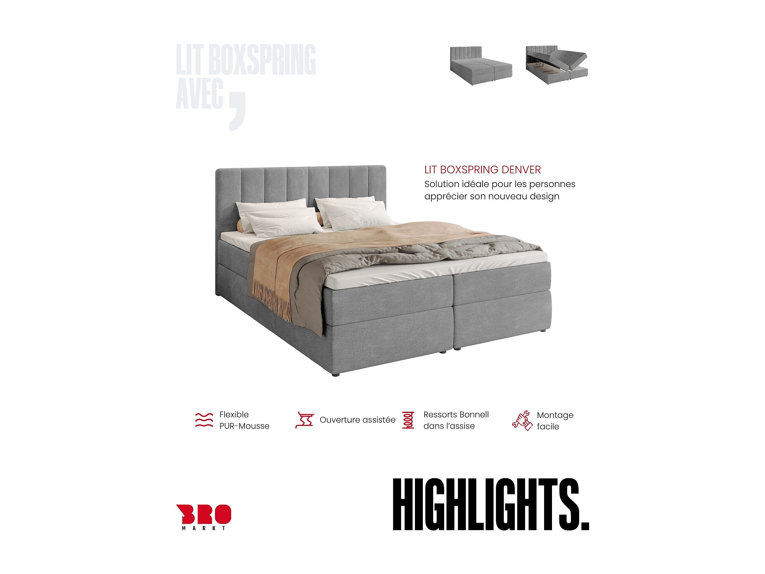 Lit boxspring avec rangement DENVER - matelas - surmatelas - gris - 180x200 cm
