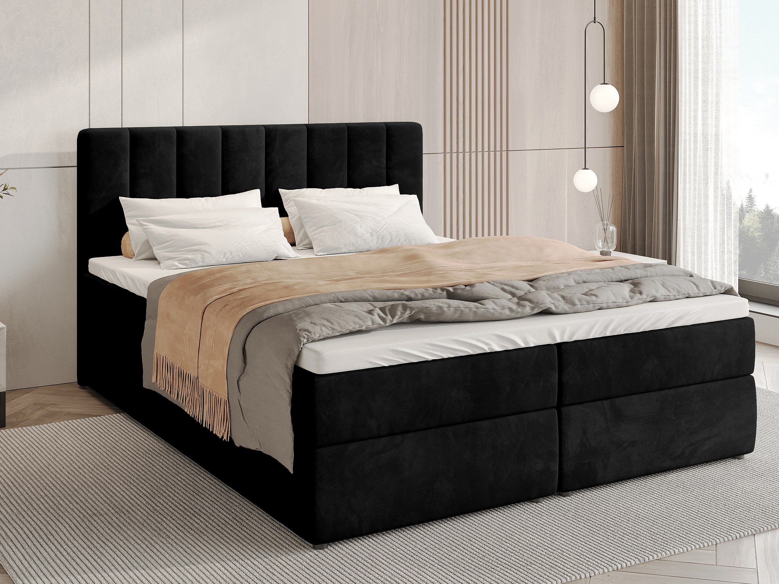 Lit boxspring avec rangement DENVER - matelas - surmatelas - noir - 180x200 cm
