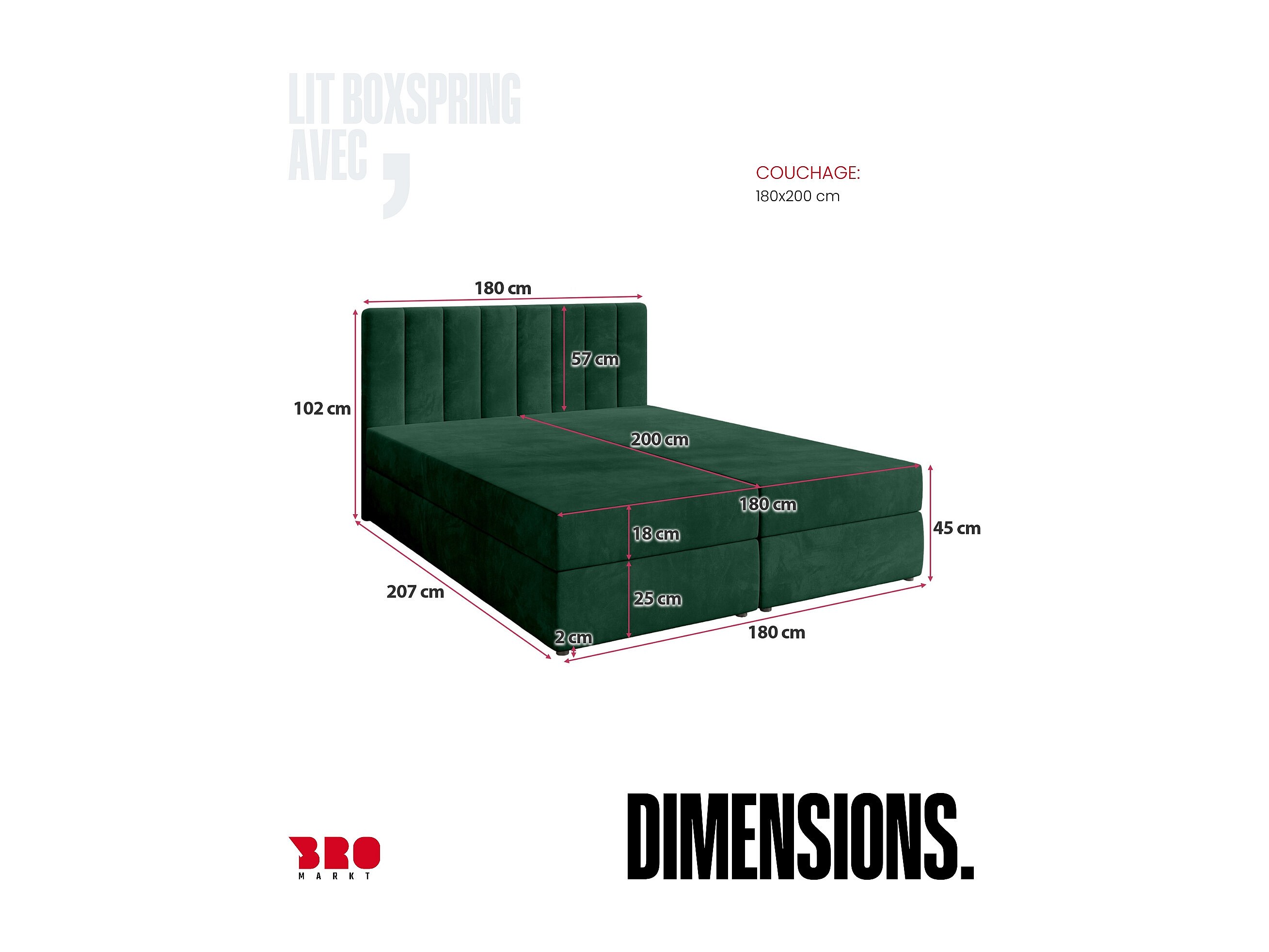Lit boxspring avec rangement DENVER - matelas - surmatelas - vert - 180x200 cm