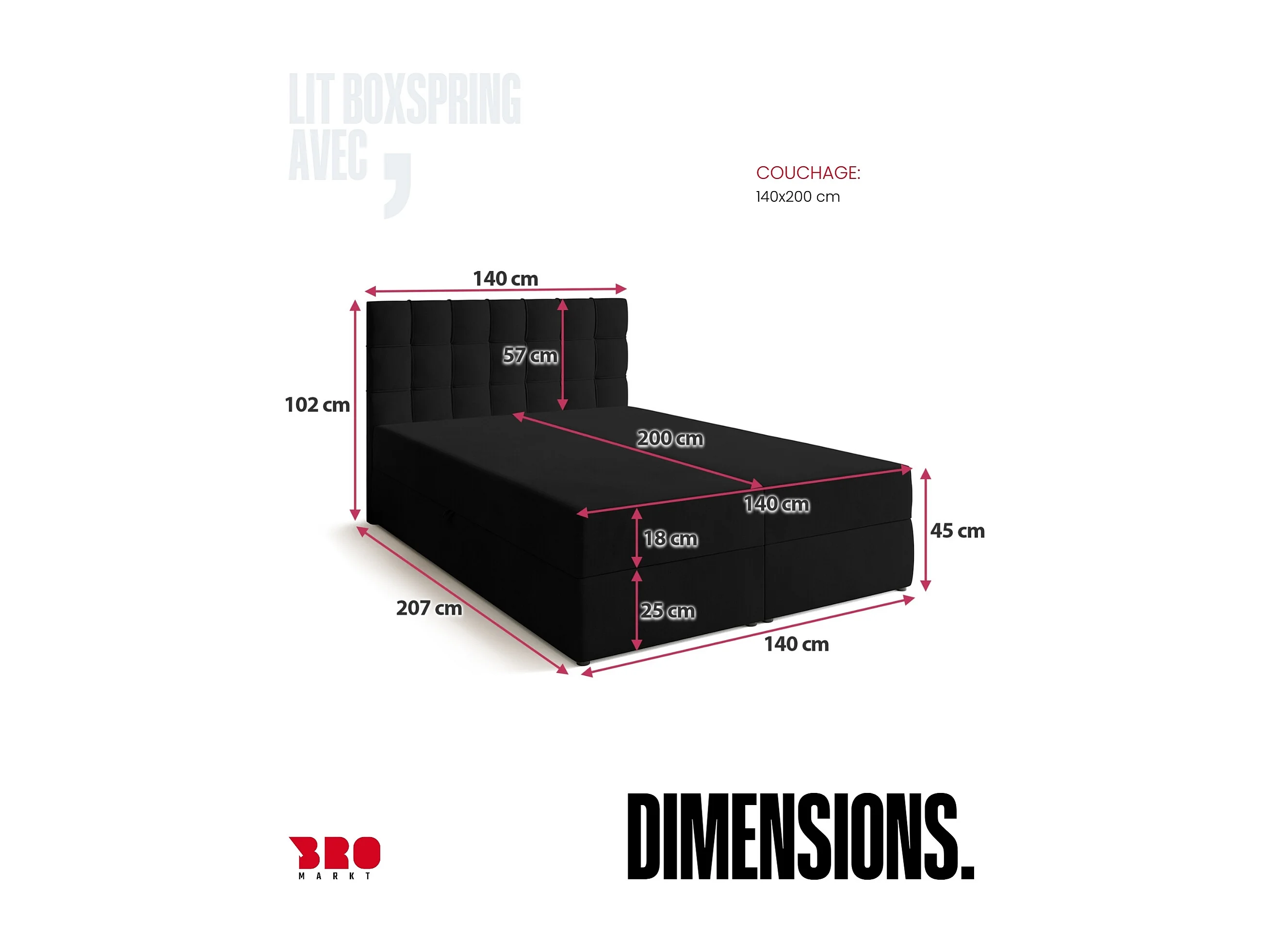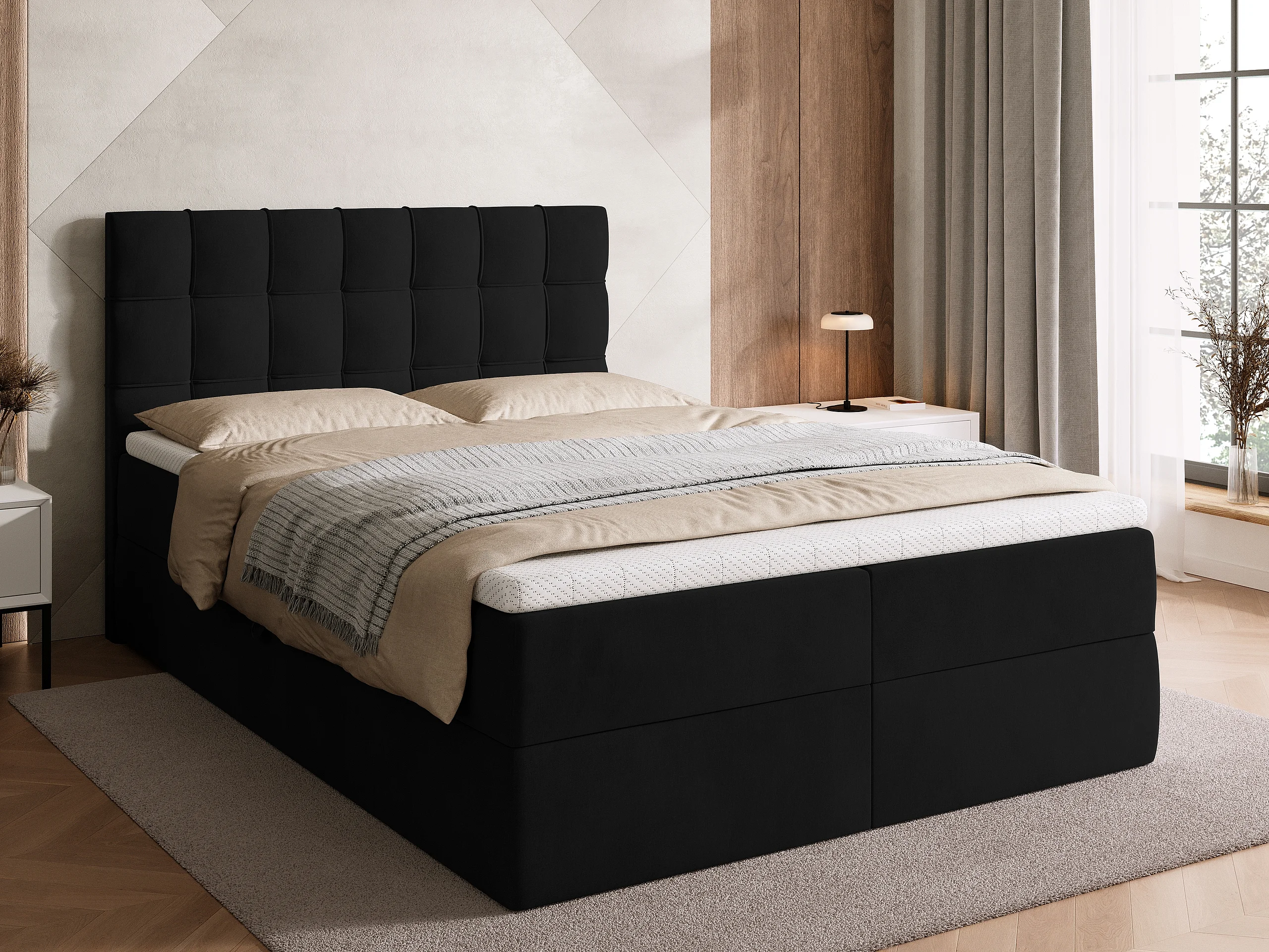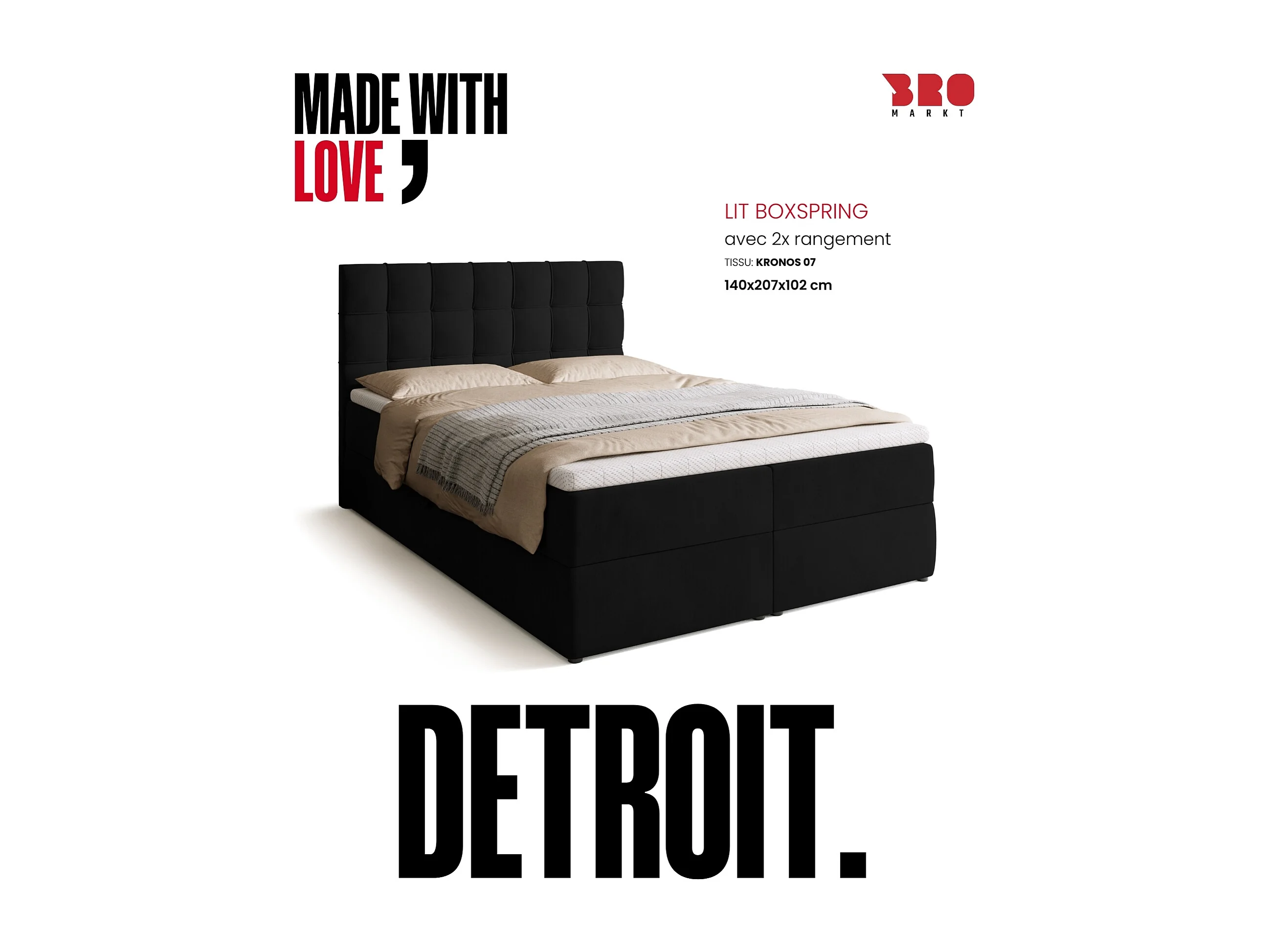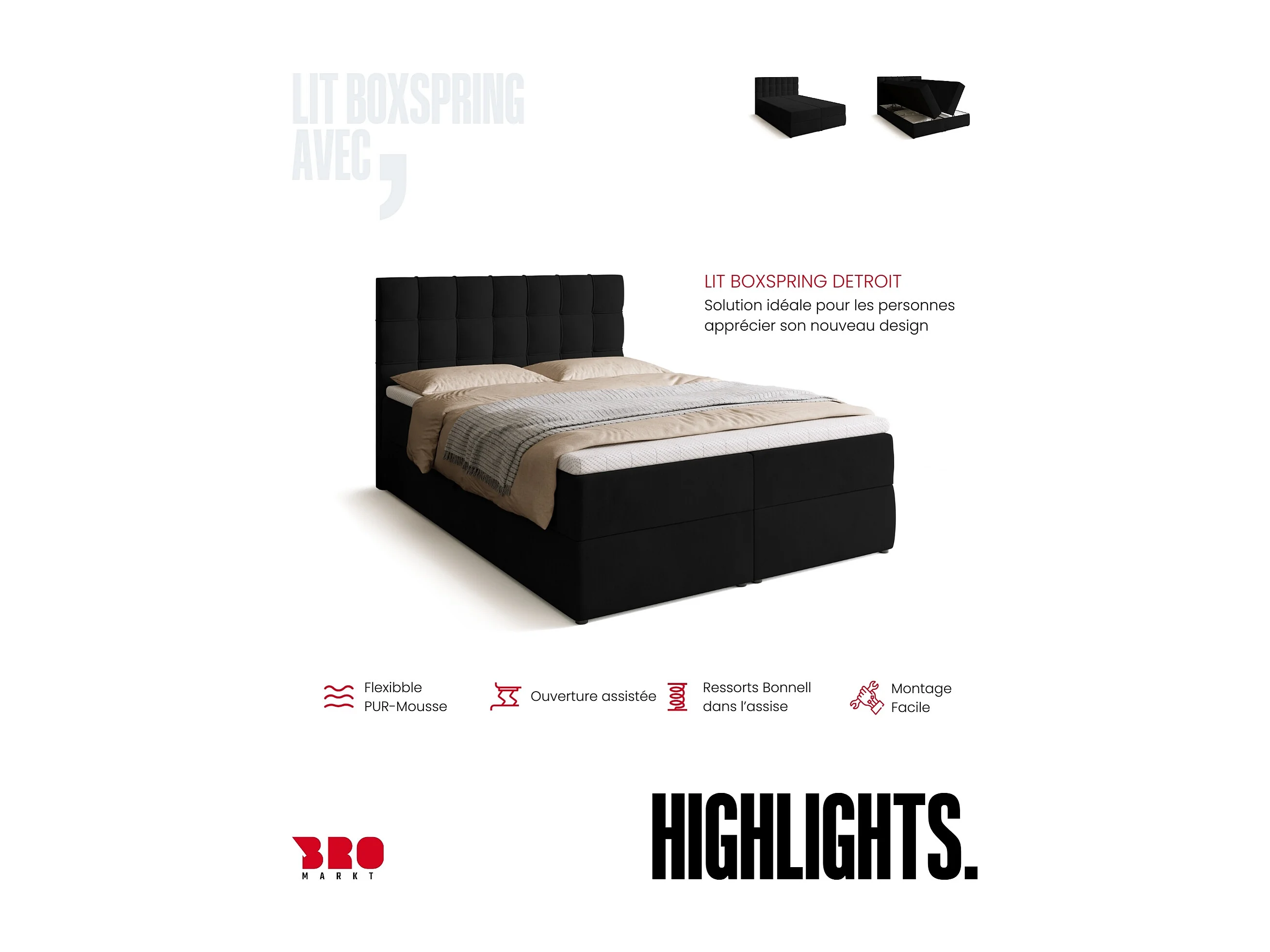Lit boxspring avec rangement DETROIT - matelas - surmatelas - noir - 140x200 cm