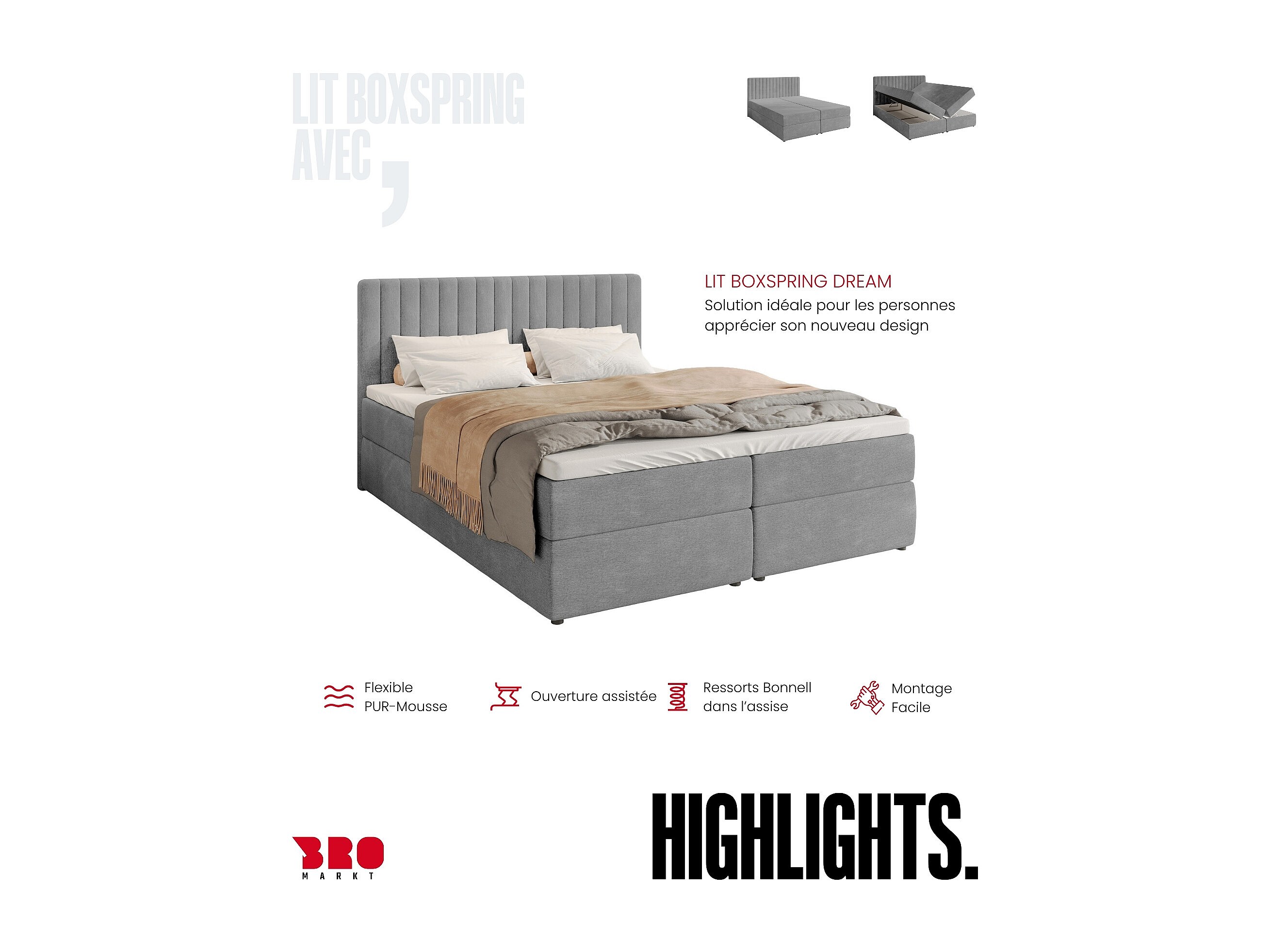 Lit boxspring avec rangement DREAM - matelas - surmatelas - gris - 140x200 cm