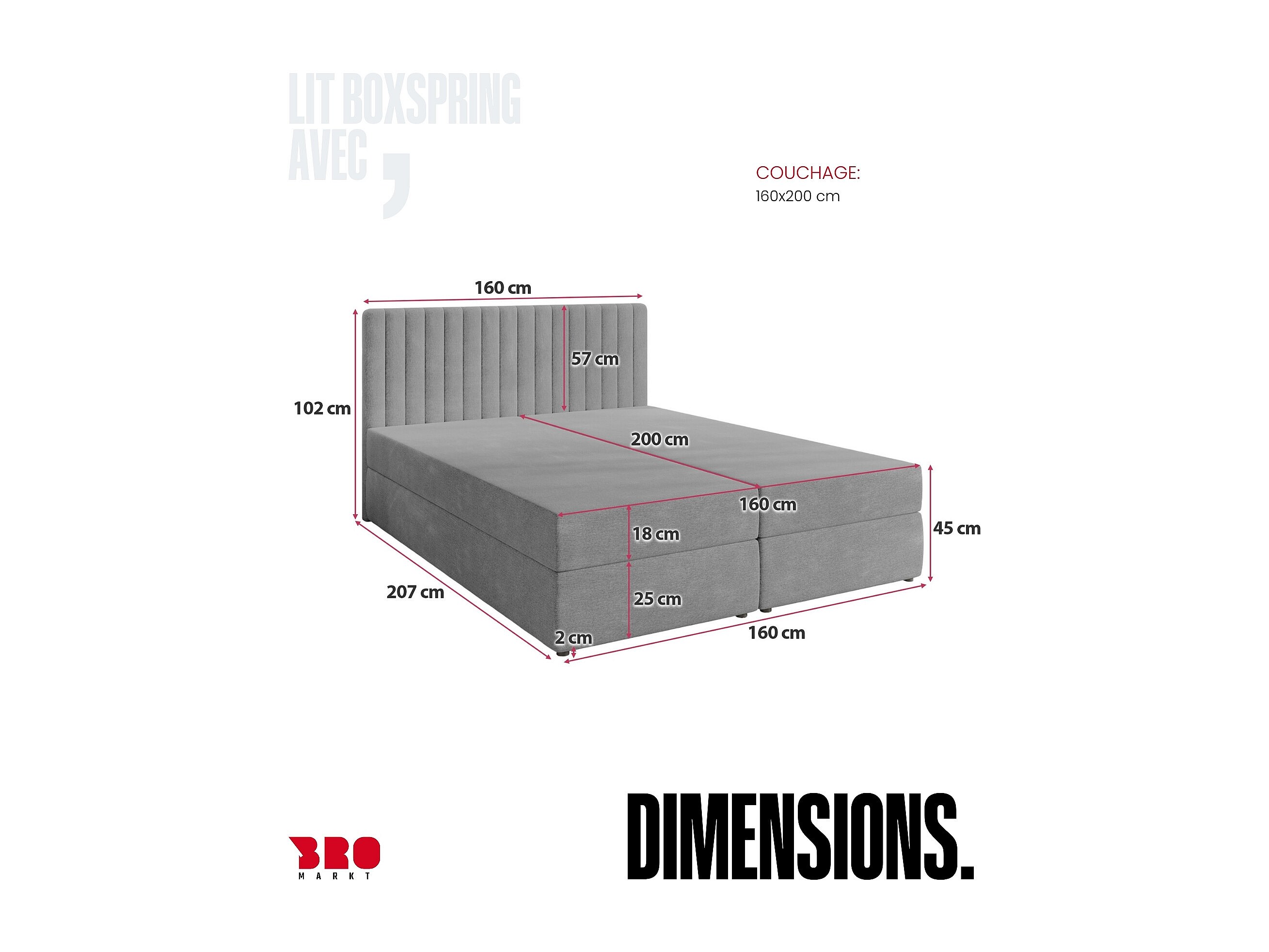 Lit boxspring avec rangement DREAM - matelas - surmatelas - gris - 160x200 cm