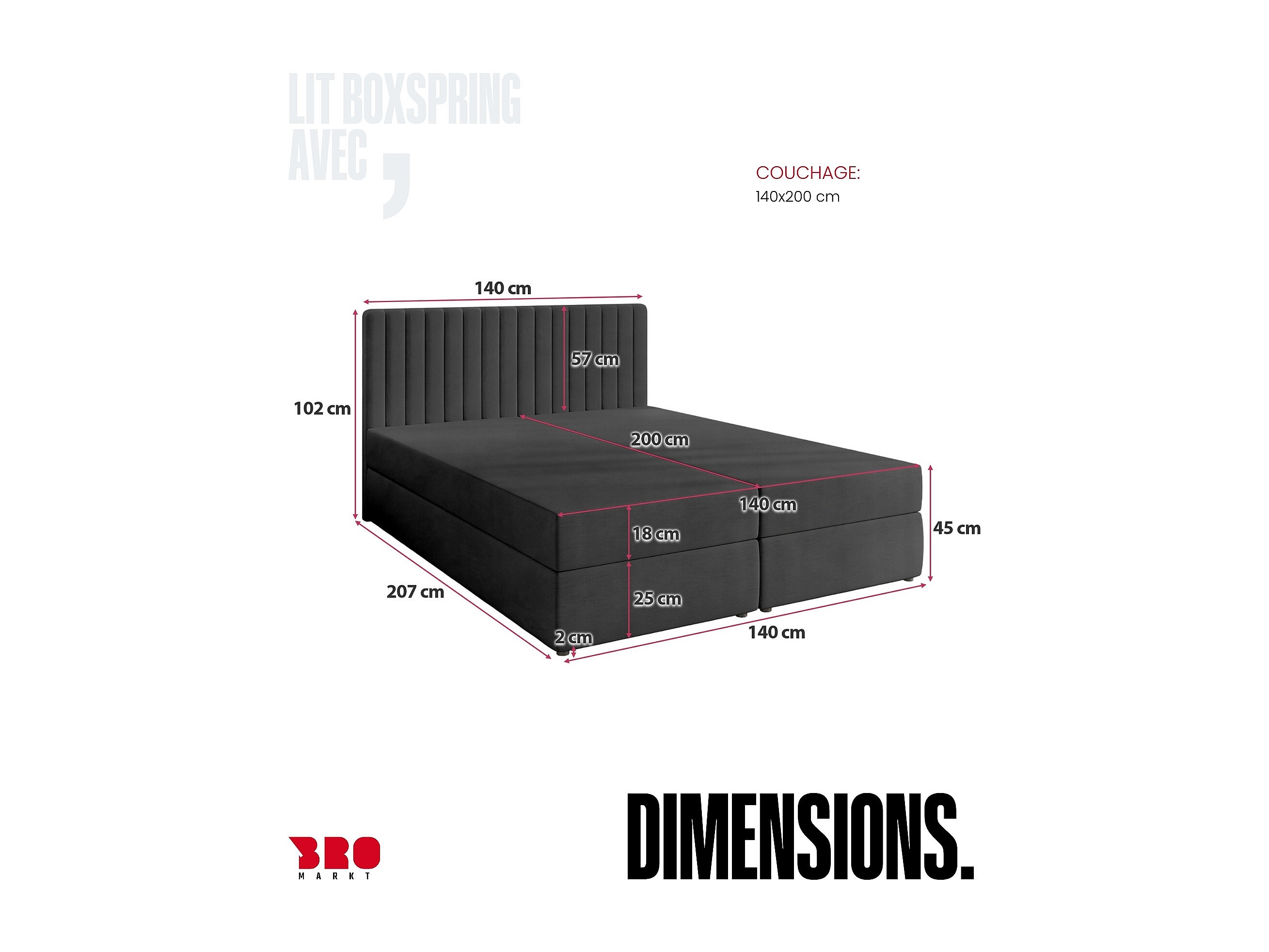 Lit boxspring avec rangement DREAM - matelas - surmatelas - gris foncé - 140x200 cm
