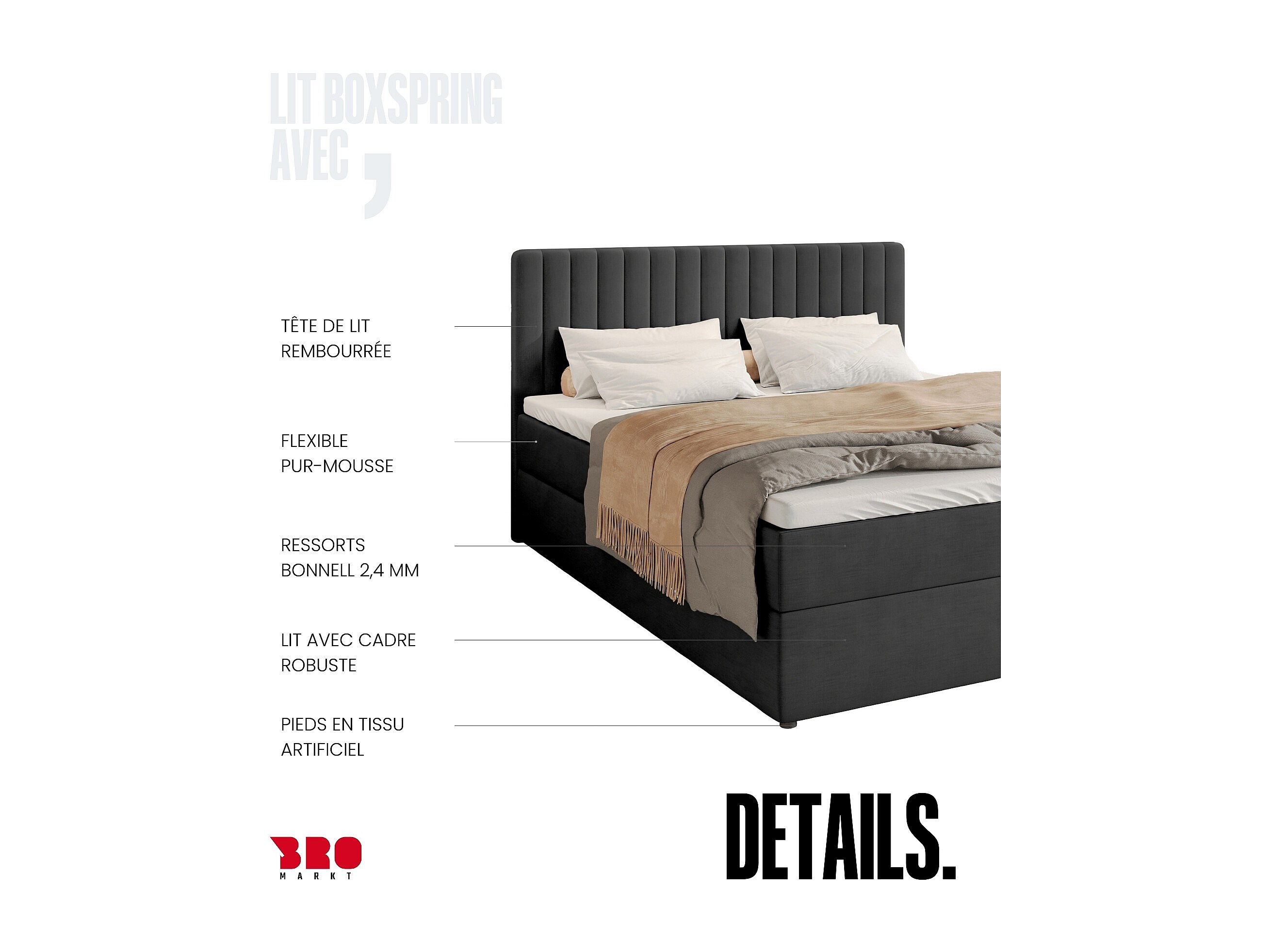 Lit boxspring avec rangement DREAM - matelas - surmatelas - gris foncé - 180x200 cm