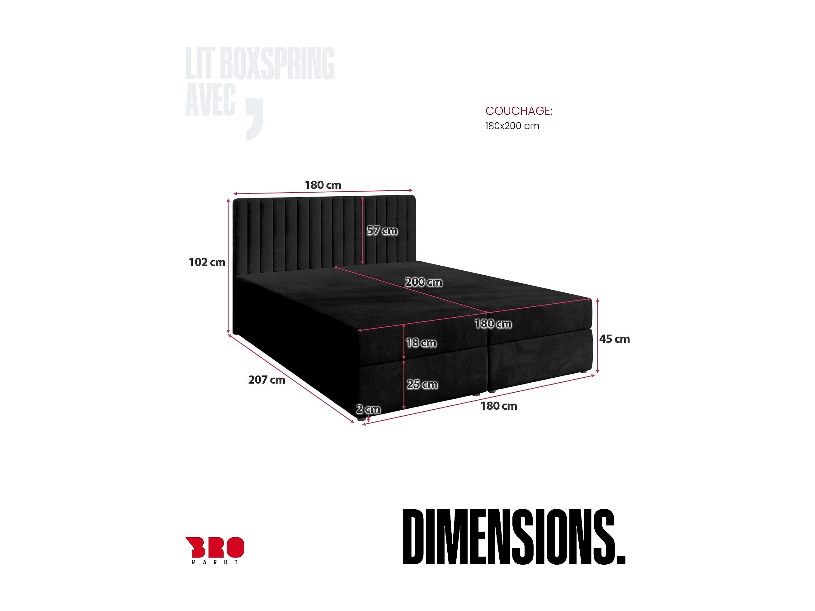 Lit boxspring avec rangement DREAM - matelas - surmatelas - noir - 180x200 cm