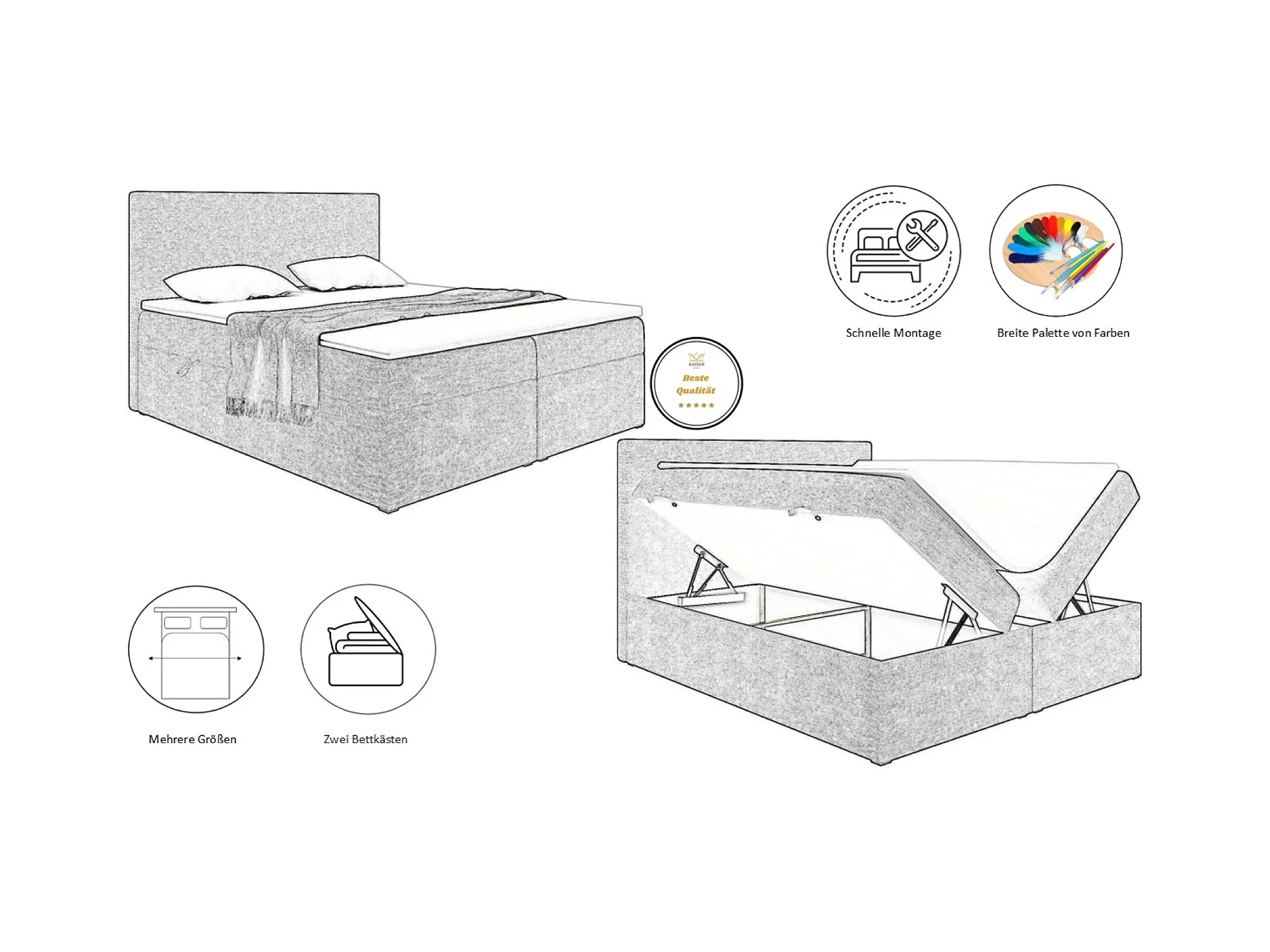 Lit continental rembourré avec surmatelas, gris - 180x200 - OASIS