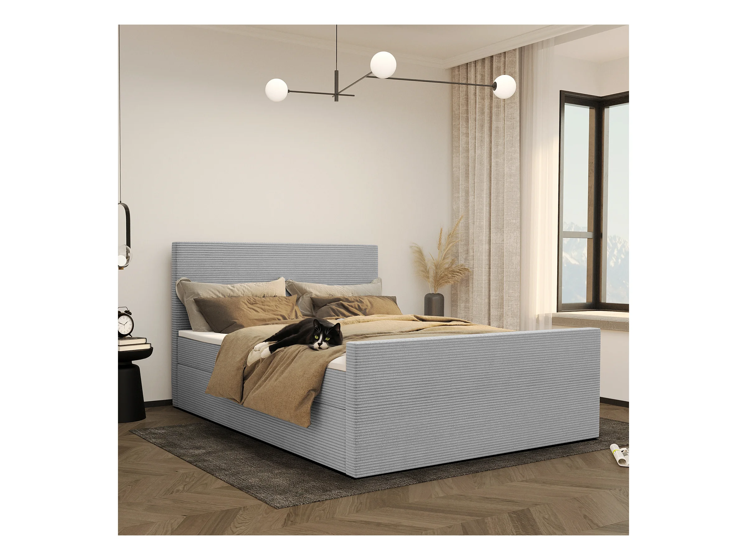 Lit boxspring 160x200 cm avec coffre – velours déperlant – gris - MUFASSO