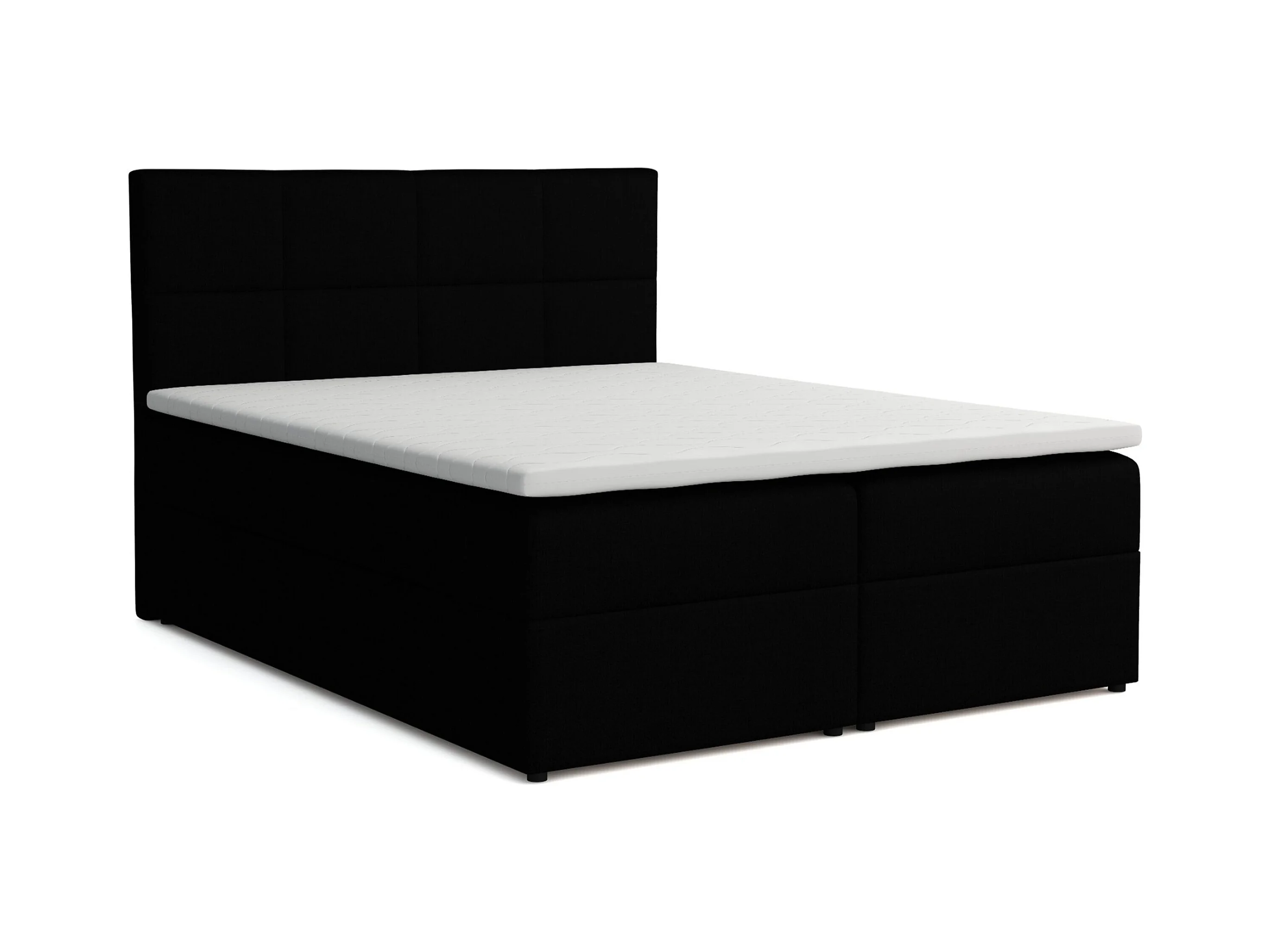 Lit boxspring Cimone avec 2 coffres de rangement, lit rembourré Dimensions: 140x200 cm, couleur: noir, tissu velours
