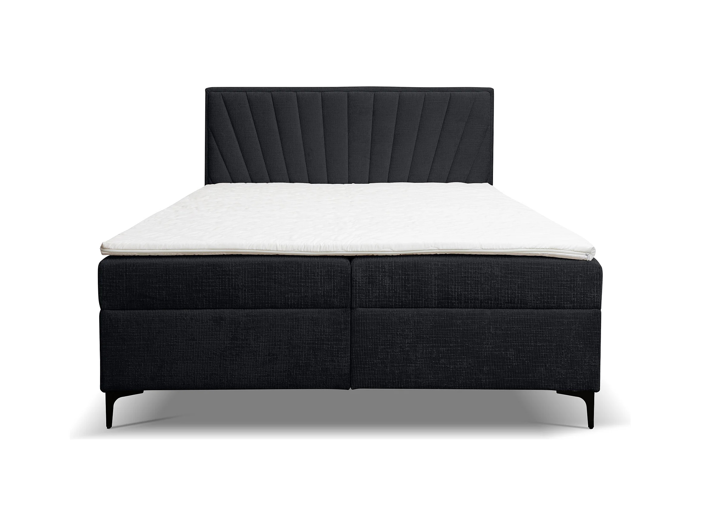 Lit boxspring GLORIA avec 2 coffres de rangement, lit rembourré Dimensions: 180x200, couleur: noir, tissu cordé
