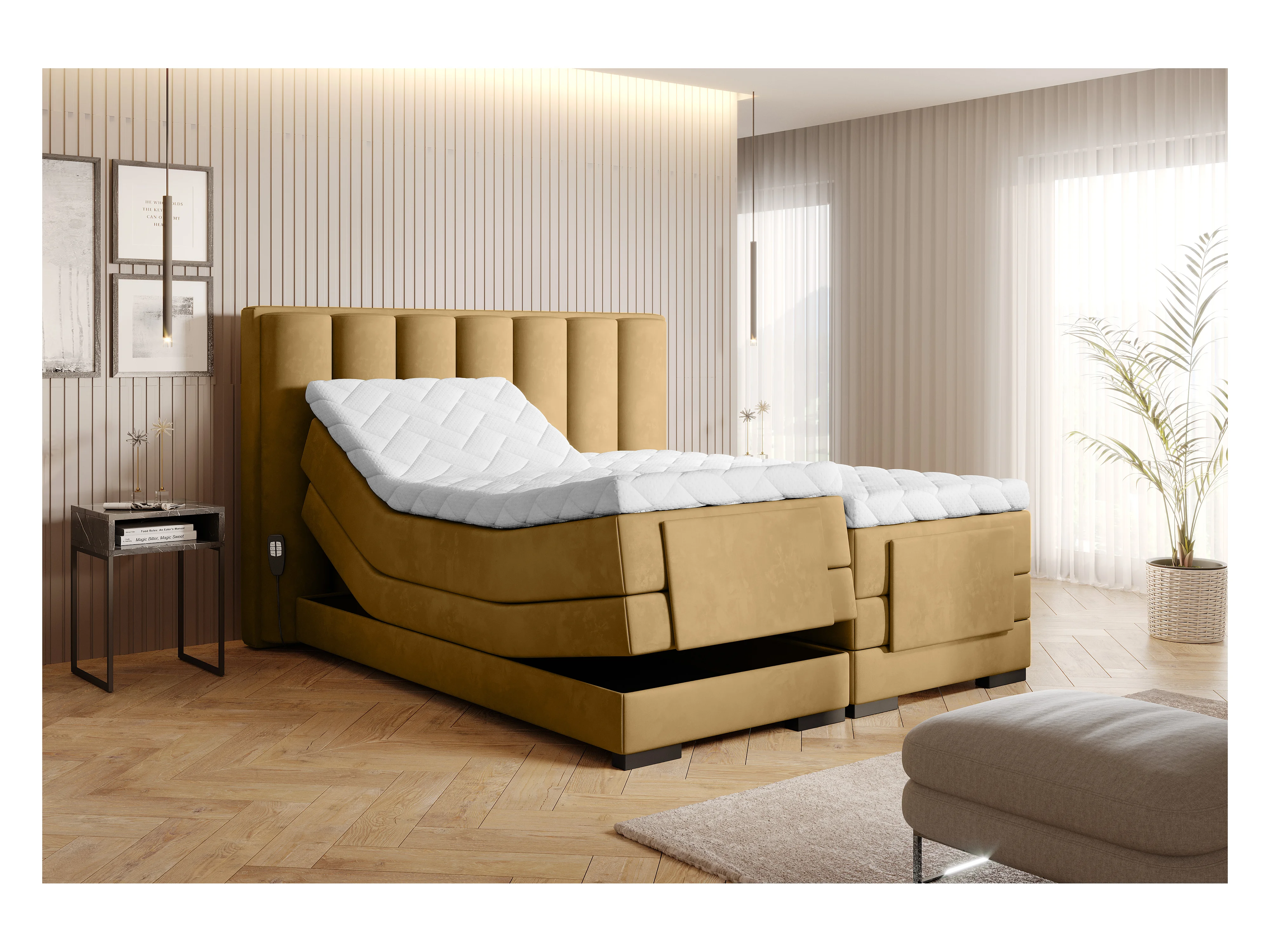 Lit continental électrique velours moutarde avec matelas et surmatelas Karmen-160x200