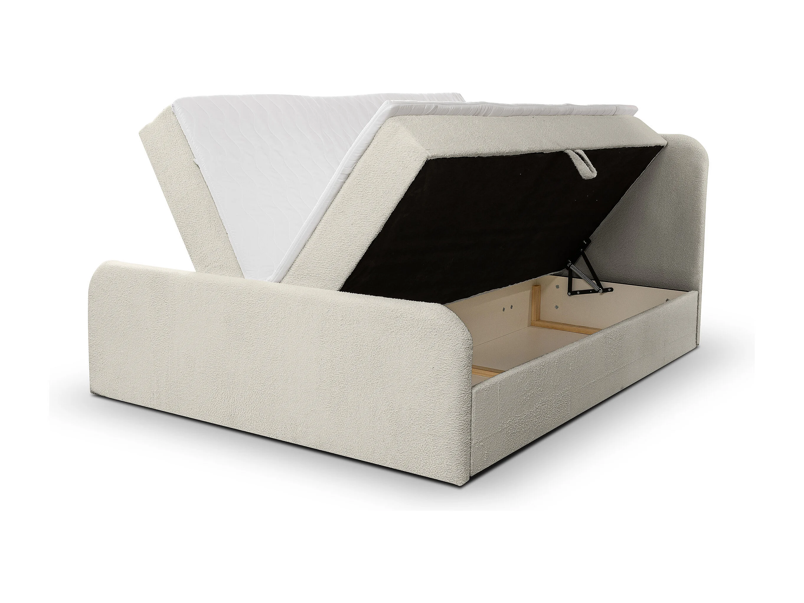 Lit boxspring LAMBI avec 2 coffres de rangement, lit rembourré Dimensions: 180x200, couleur: beige, tissu bouclé
