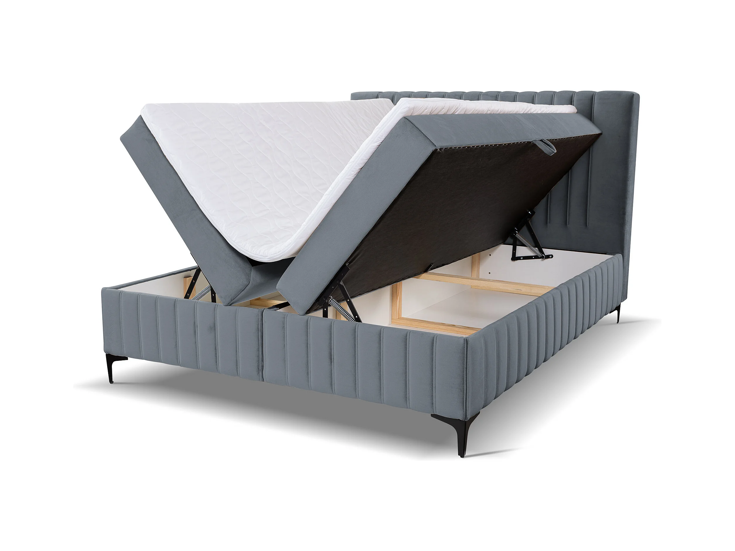 Lit boxspring QUANT avec 2 coffres de rangement, lit rembourré Dimensions: 140x200, couleur: gris, tissu velours