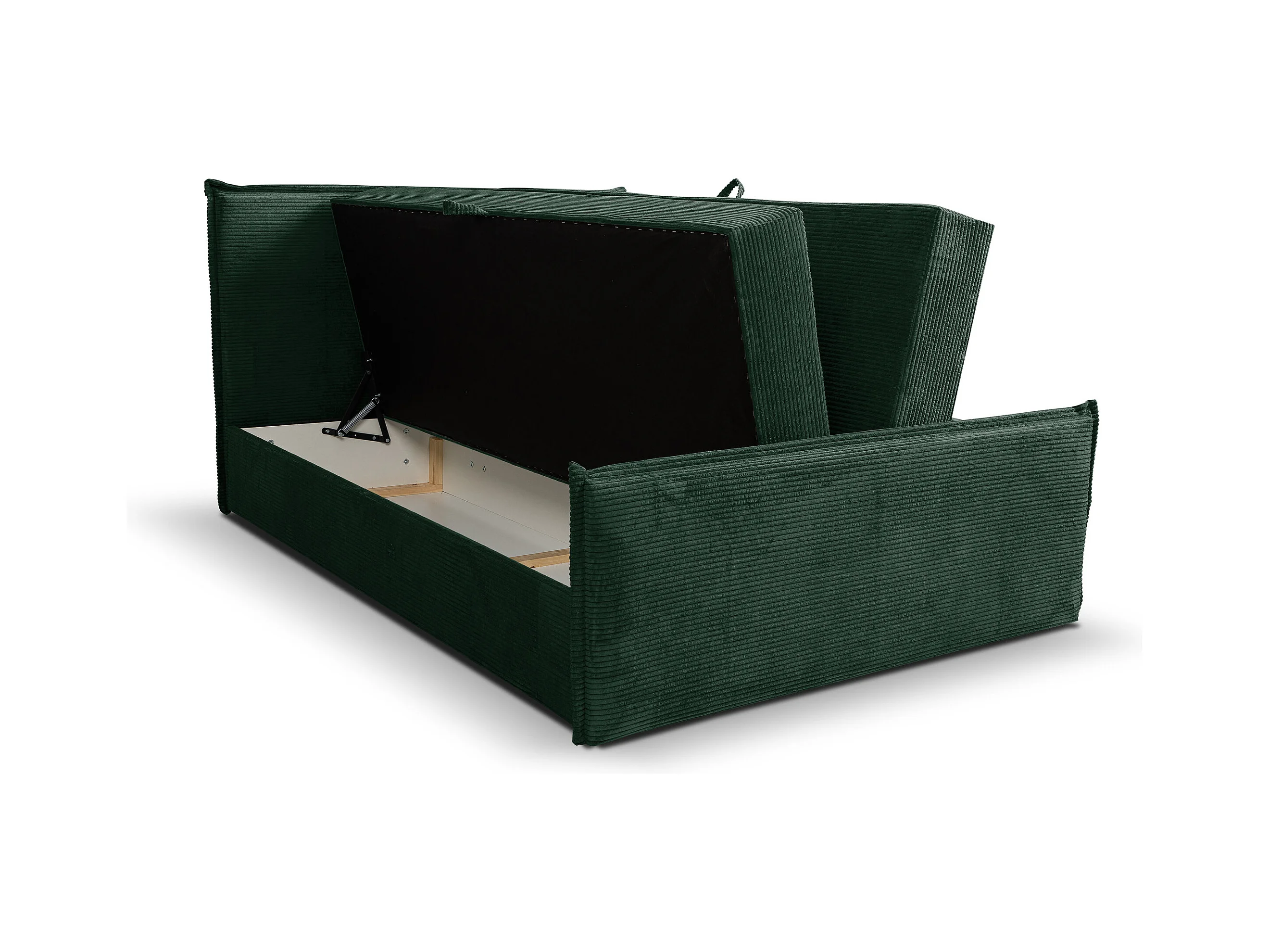 Lit boxspring Vanessa avec 2 coffres de rangement, lit rembourré Dimensions: 160x200, couleur: vert, tissu cordé