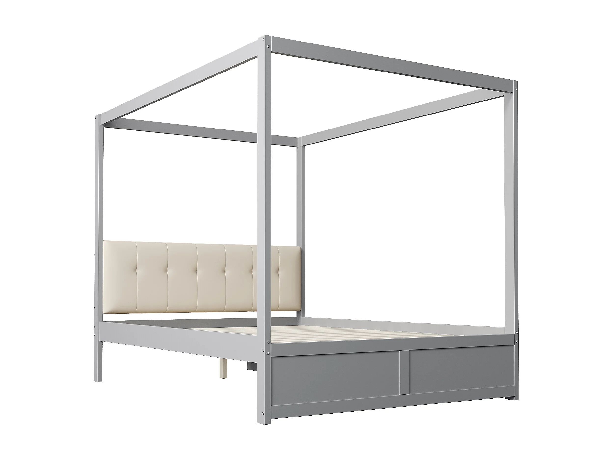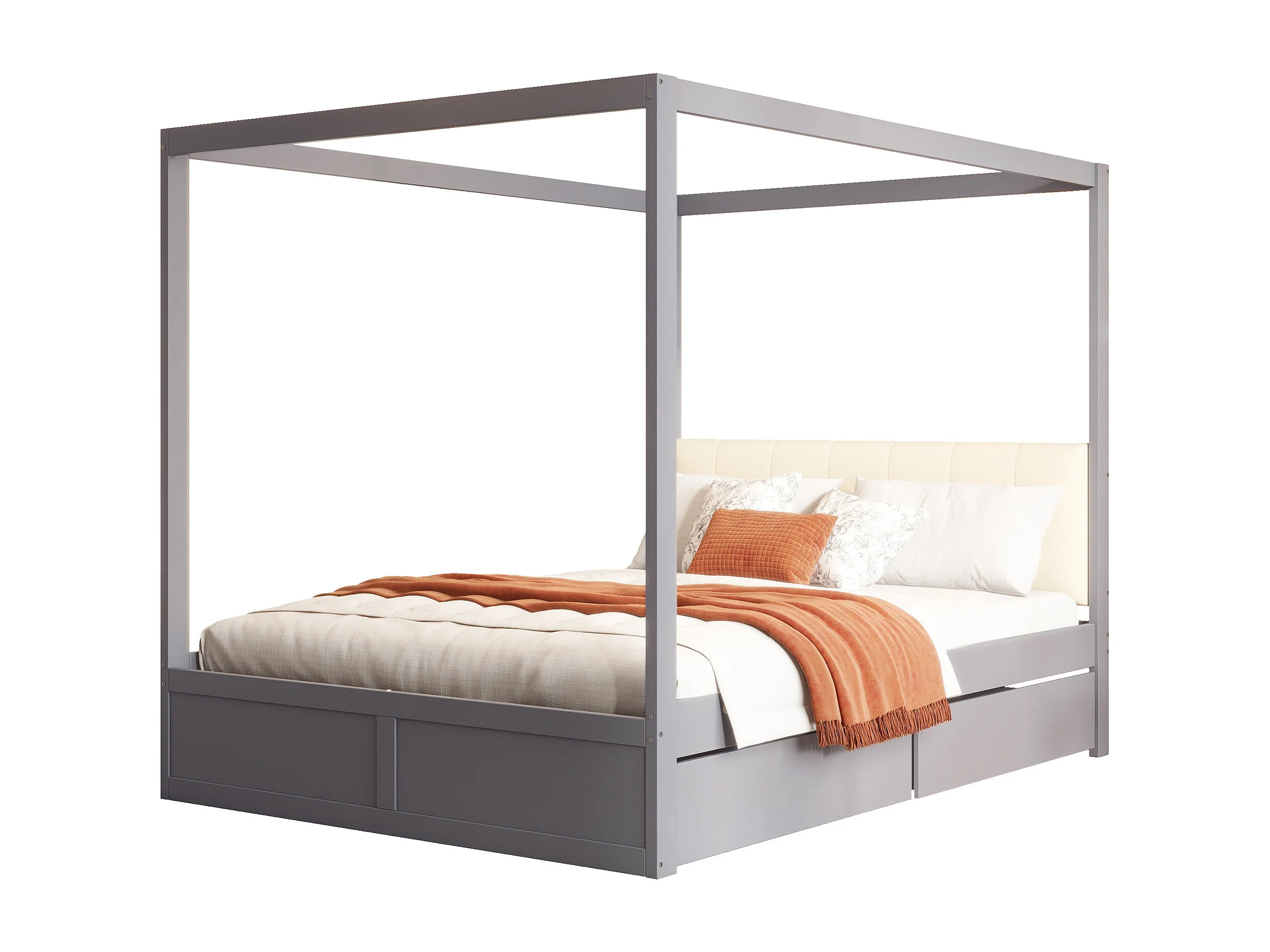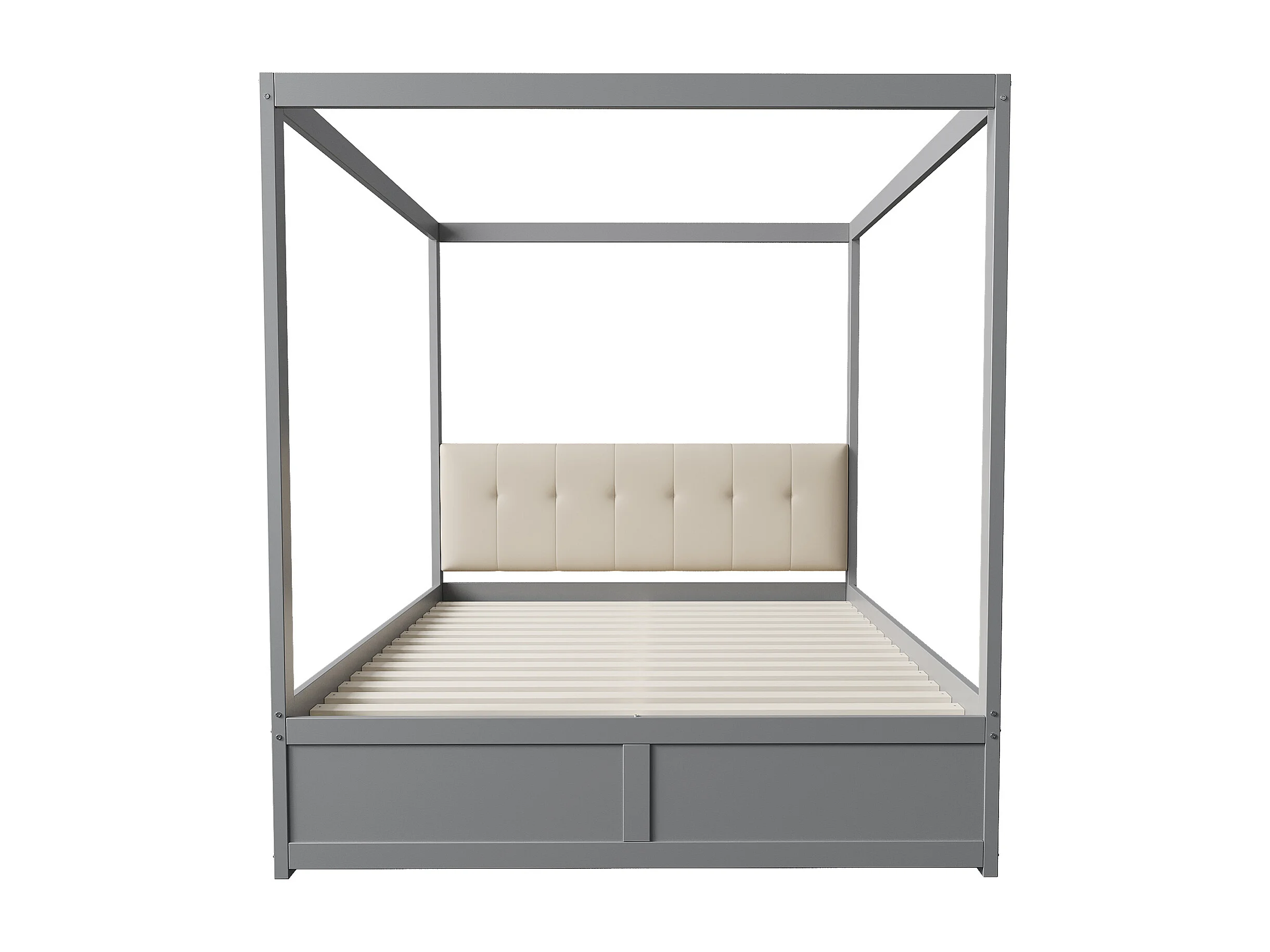 Lit cabane 140x200 cm - avec tête de lit et 2 tiroirs - gris