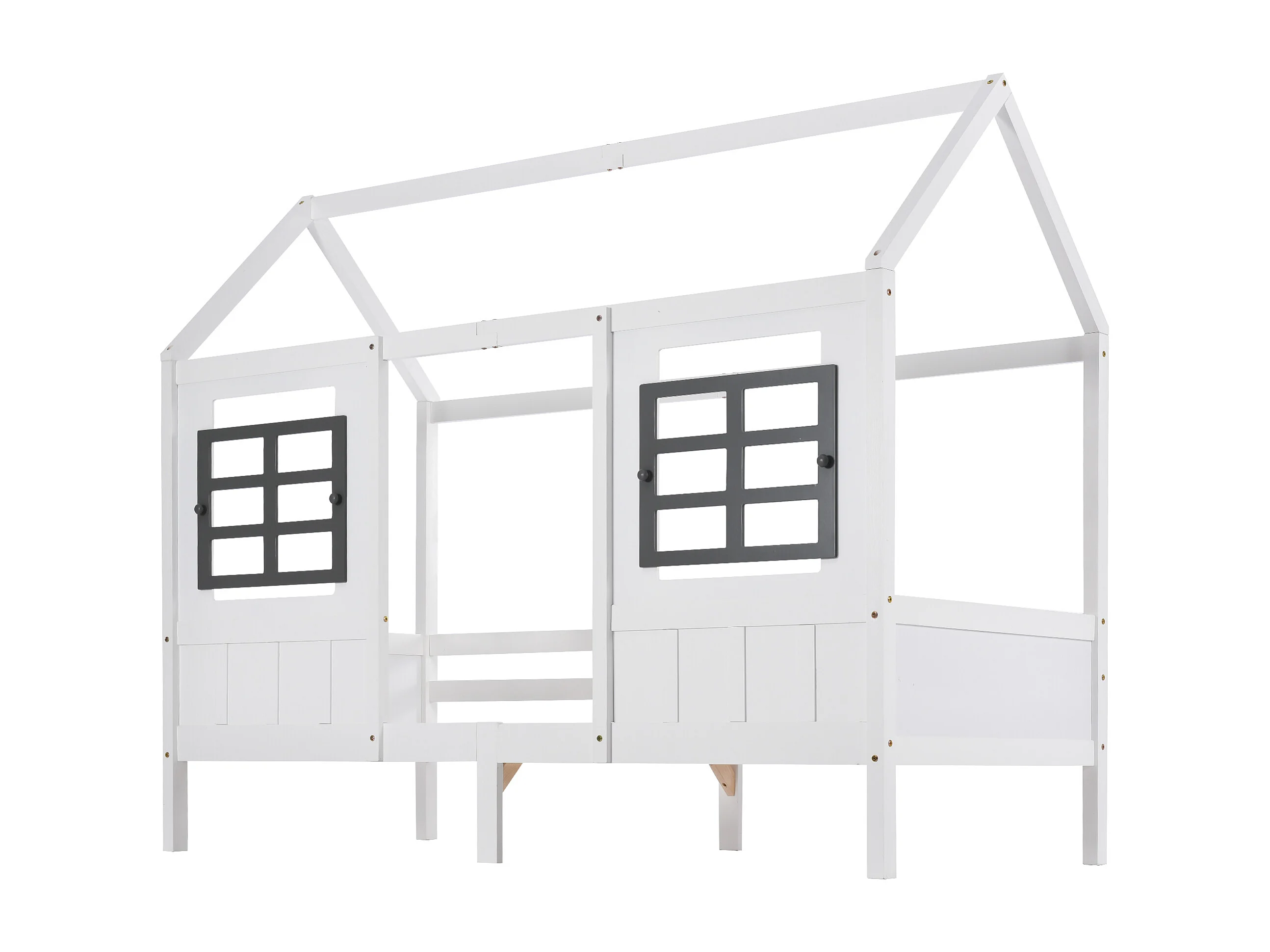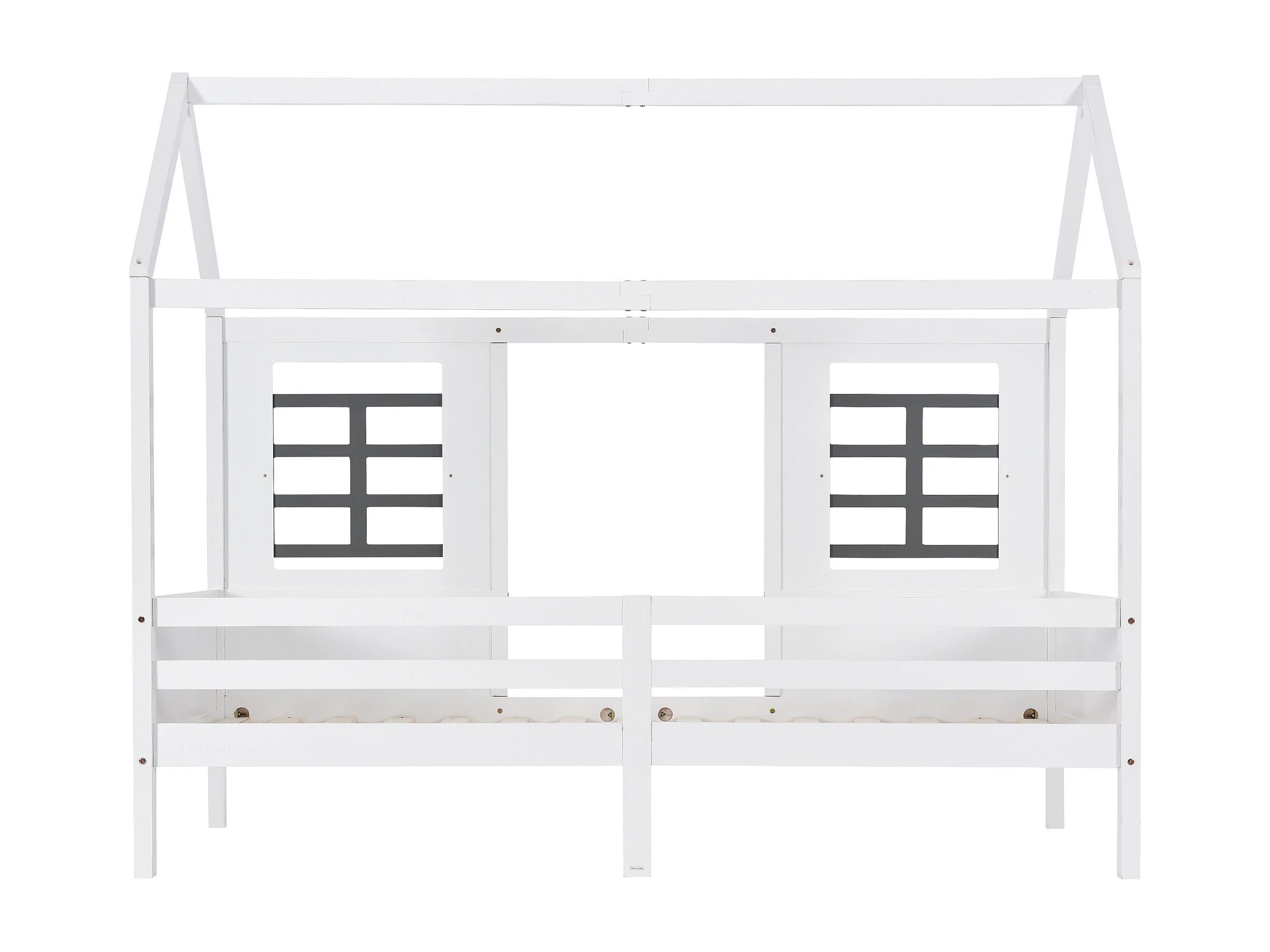 Lit cabane 200x90cm - avec deux fenêtres - bois blanc - matelas non inclus