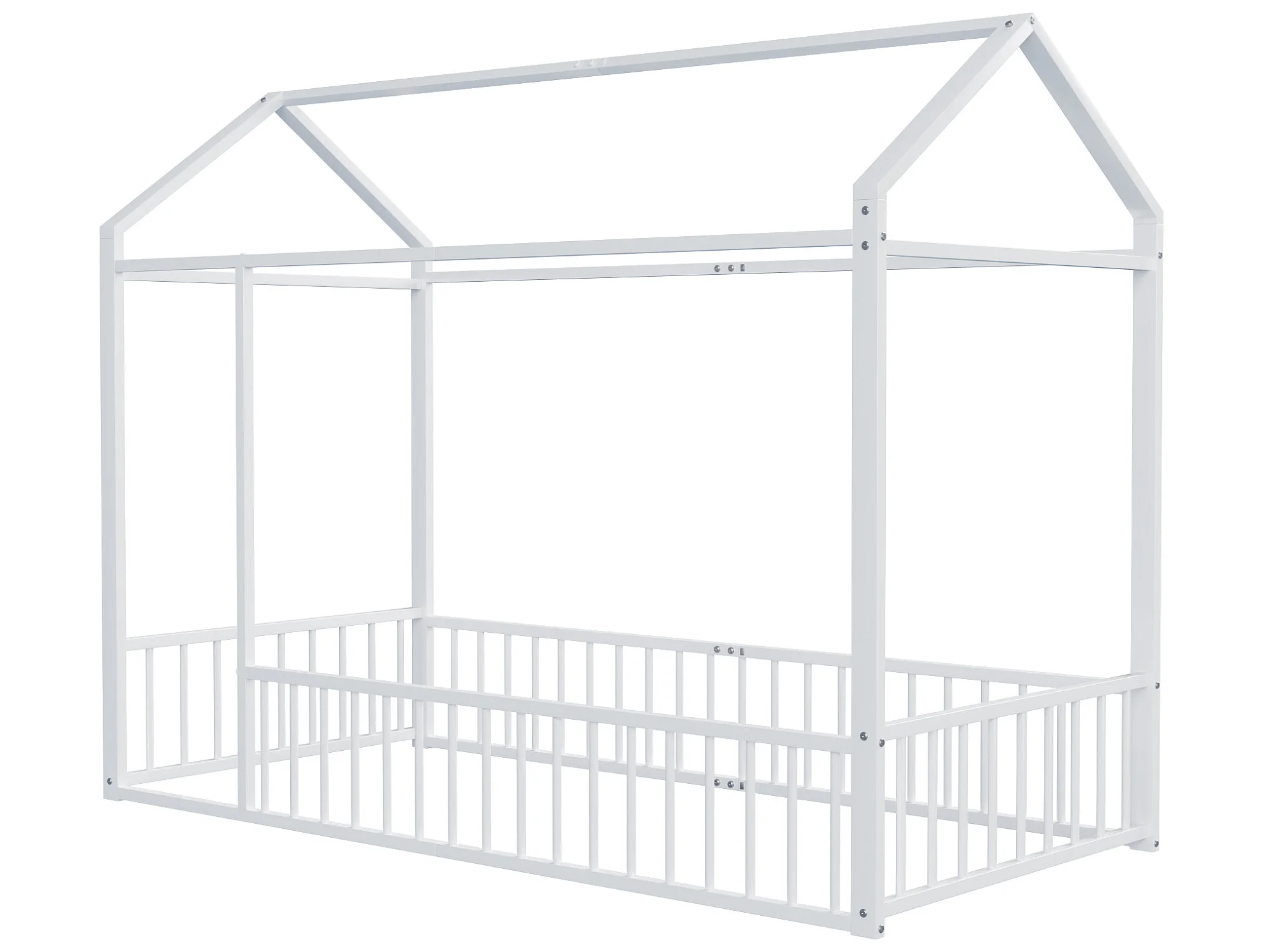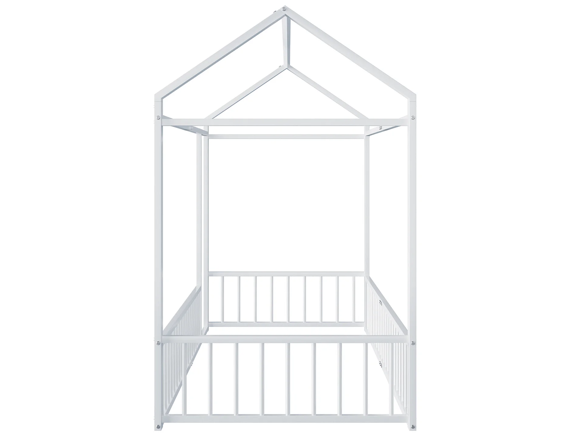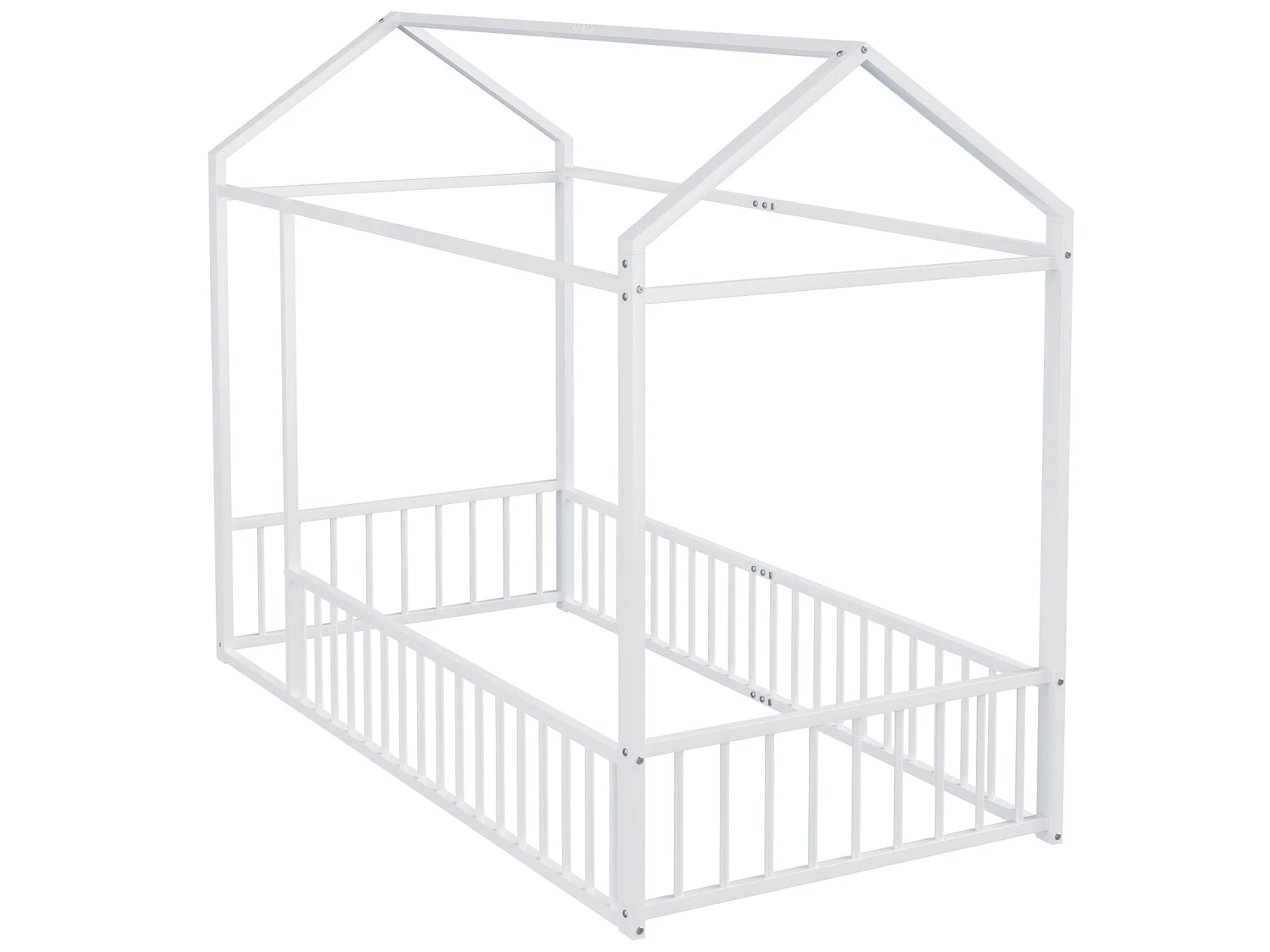 Lit cabane 90 x 200 cm pour enfant - métal - sans sommier - coloris blanc
