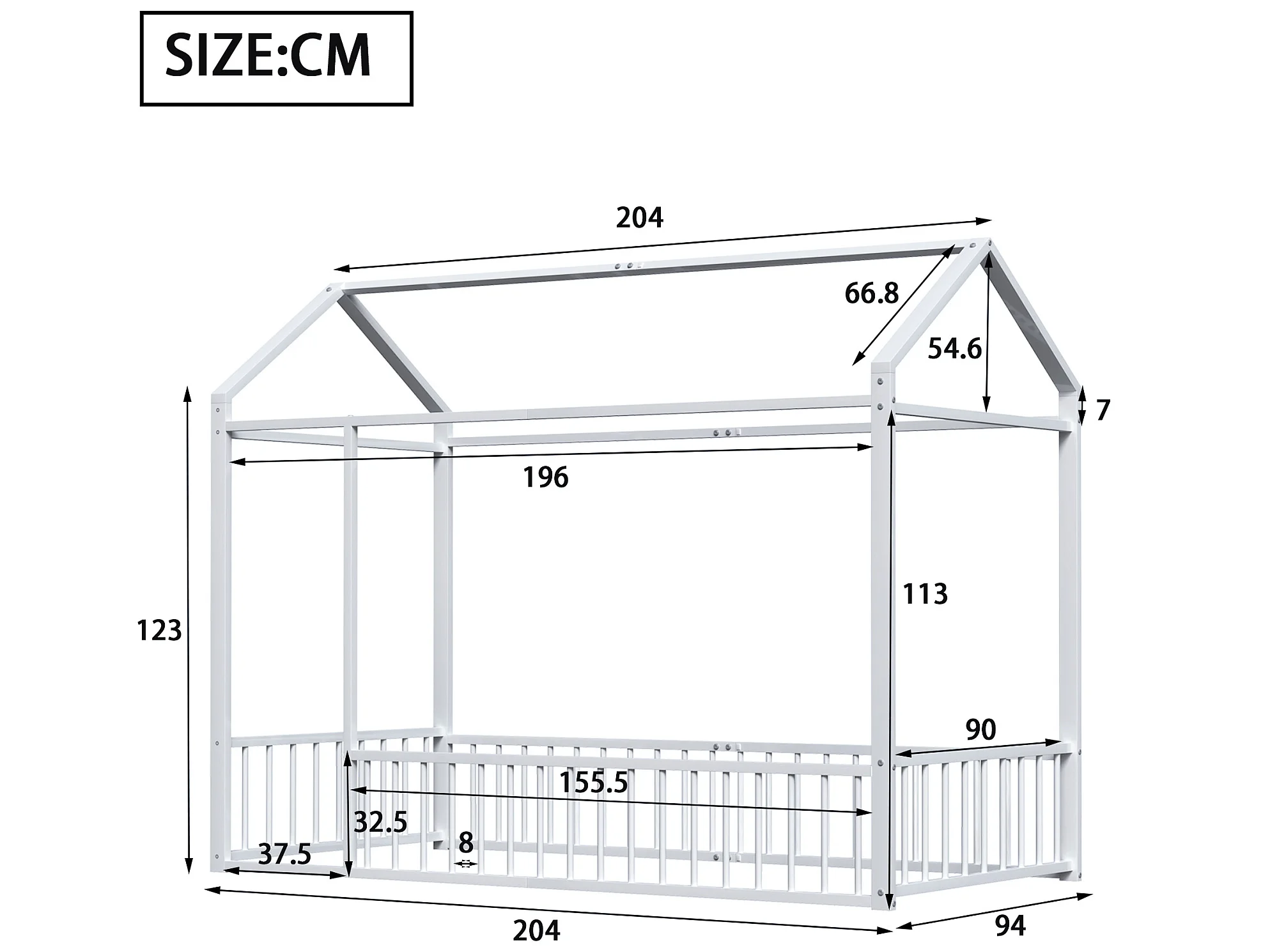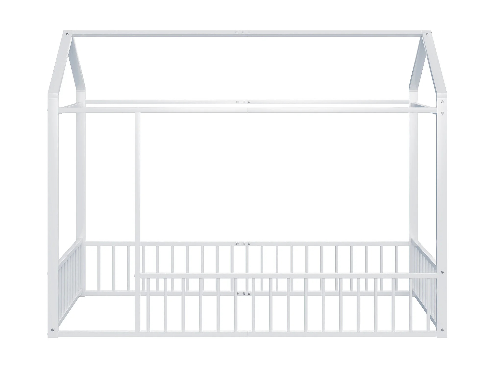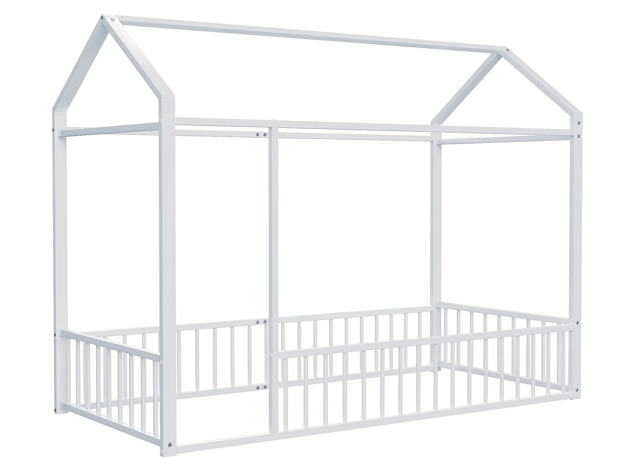 Lit cabane 90 x 200 cm pour enfant - métal - sans sommier - coloris blanc